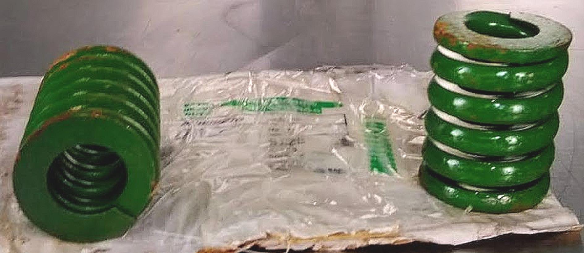 These Color Coded Raymond Green Die Springs are made of high tensile strength chromium alloy steels. Optimal wire cross section. Spring ends are ground square. Dimensional requirements remain consistent and measurably the same from one batch of springs to the next. Engineered to better withstand shock loading. Designed to endure constant high-speed deflections. Shot-peened to increase fatigue life for less downtime.