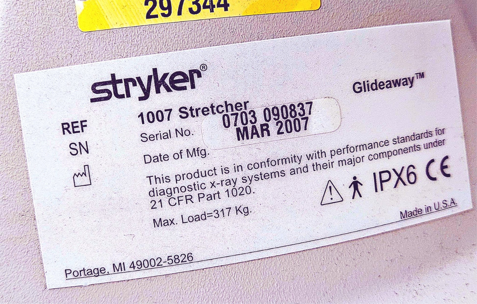 Technical Information on this Stryker 1007 Gurney in Italics Blue below was taken from Manufacturer's website: