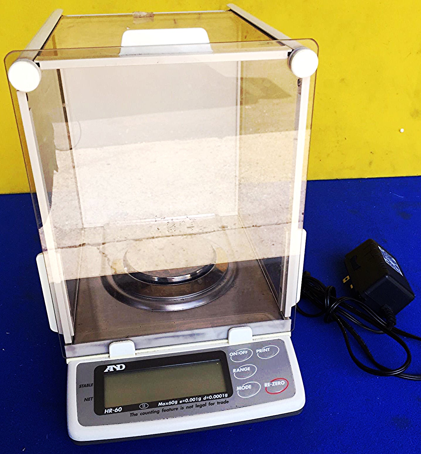 This listing is for a Wonderful Operational condition A&D HR-60 LEGAL TRADE GEM HIGH RESOLUTION DIGITAL BALANCE 0.1mg readability Diamond Scale as can be seen in the pictures.