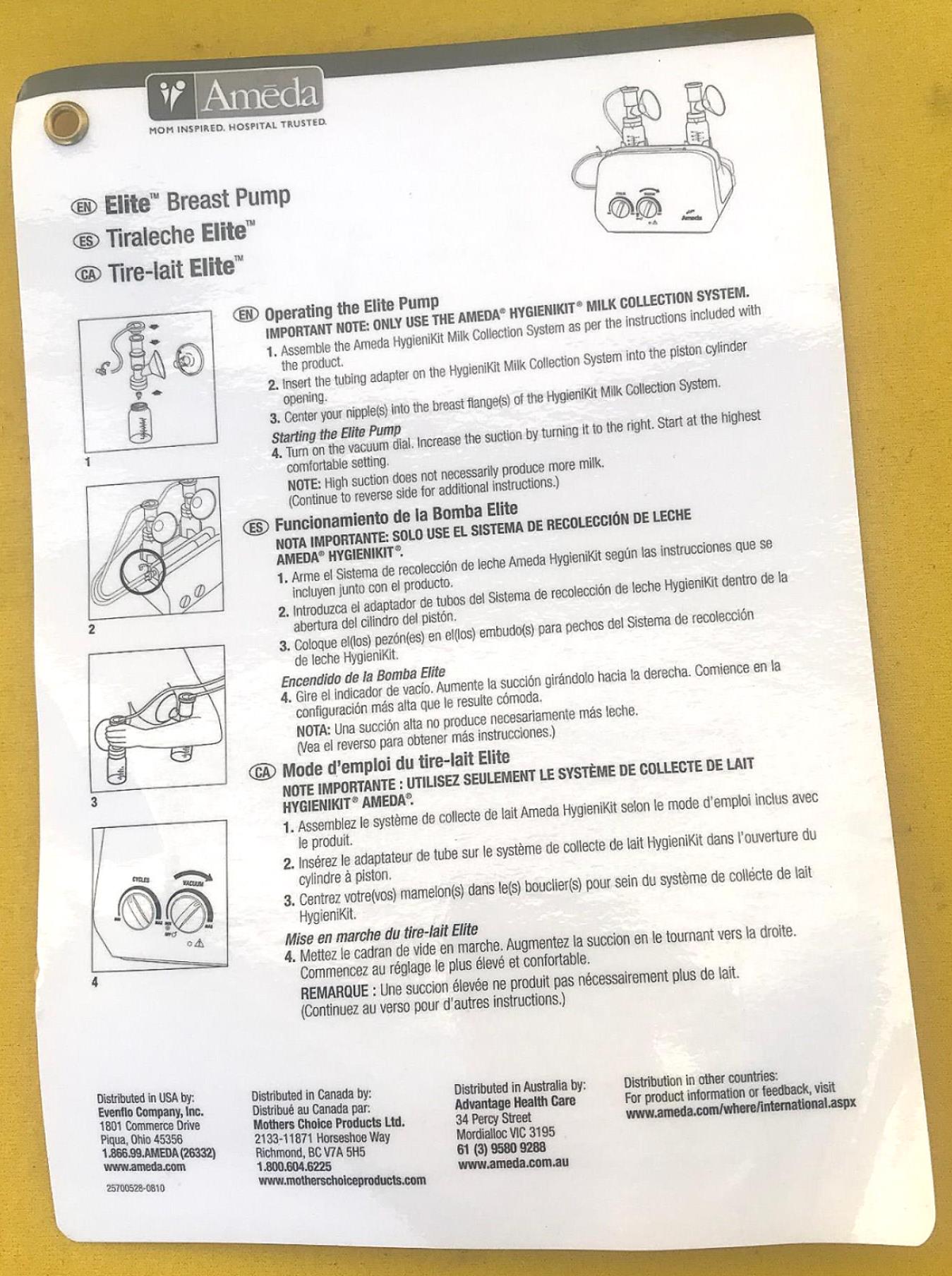 This listing is for a PERFECT OPERATIONAL CONDITION AMEDA ELITE BREAST PUMP as can be WATCHED IN THE VIDEO and also seen in the pictures.