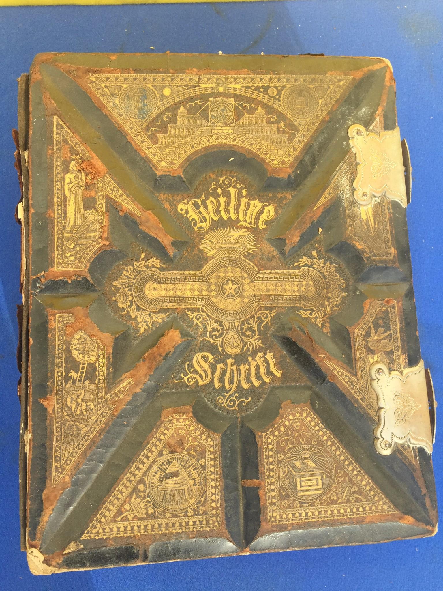 Antique GERMAN FAMILY BIBLE 1800's illustrated HEILIGE SCHRIFT BIBEL FREESHIP