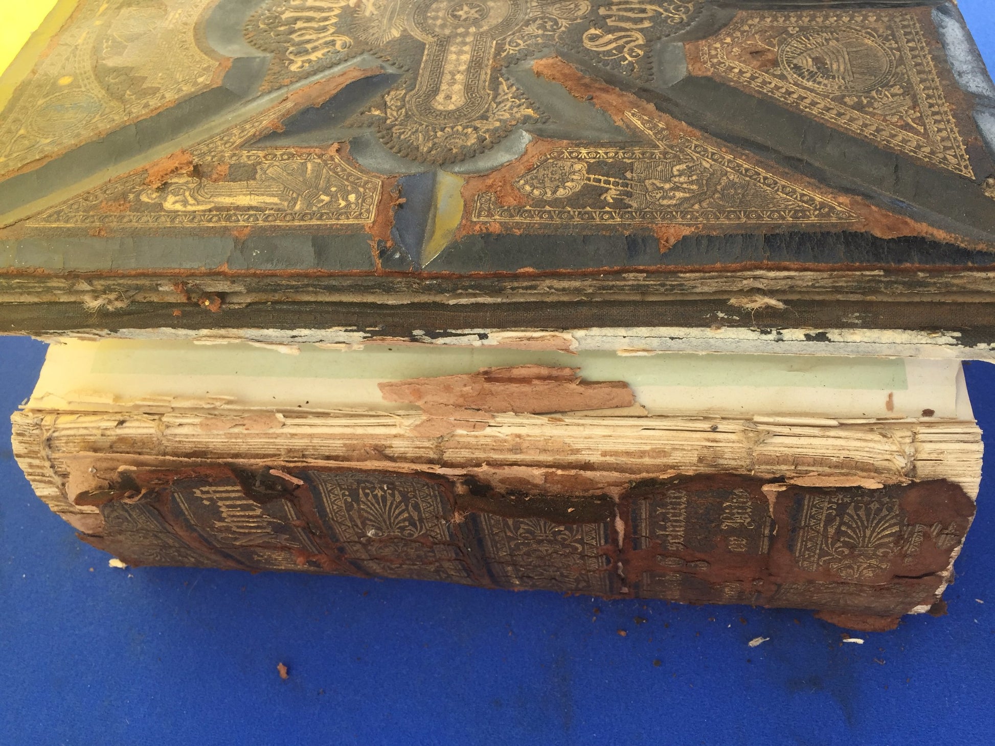 Rubbing to boards and gilding.