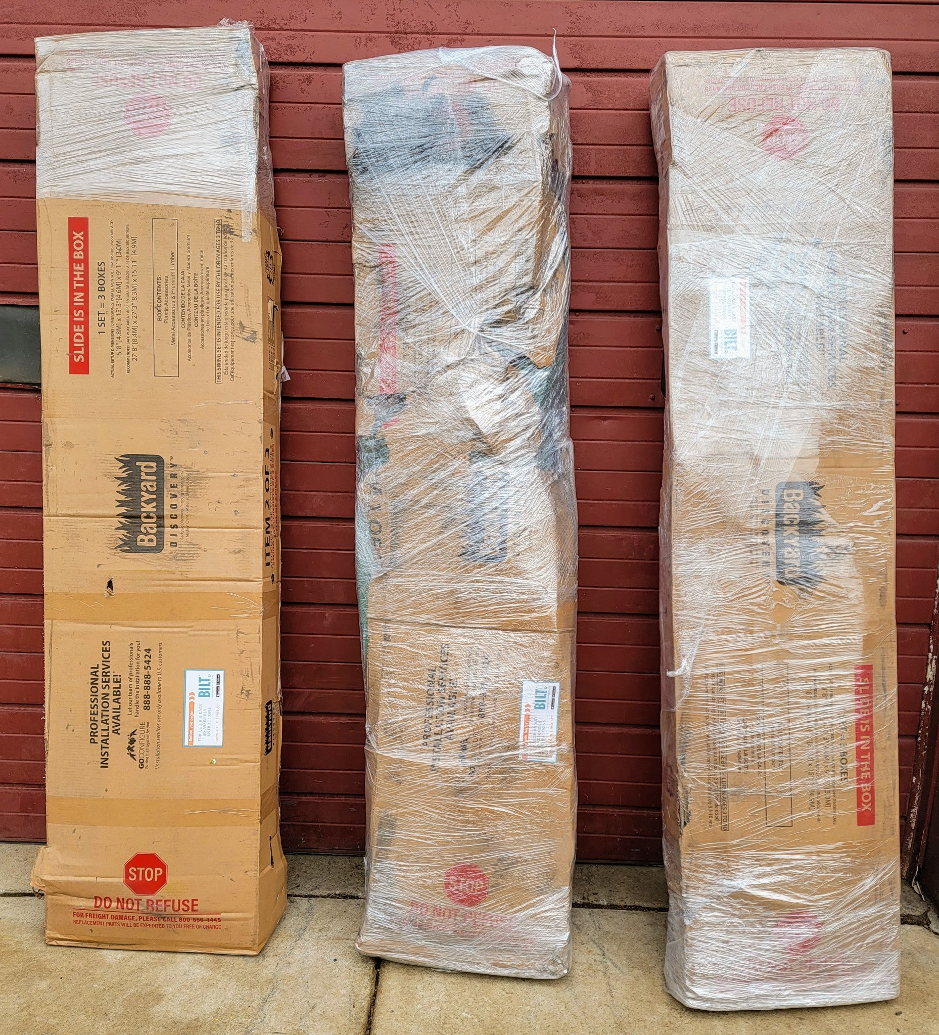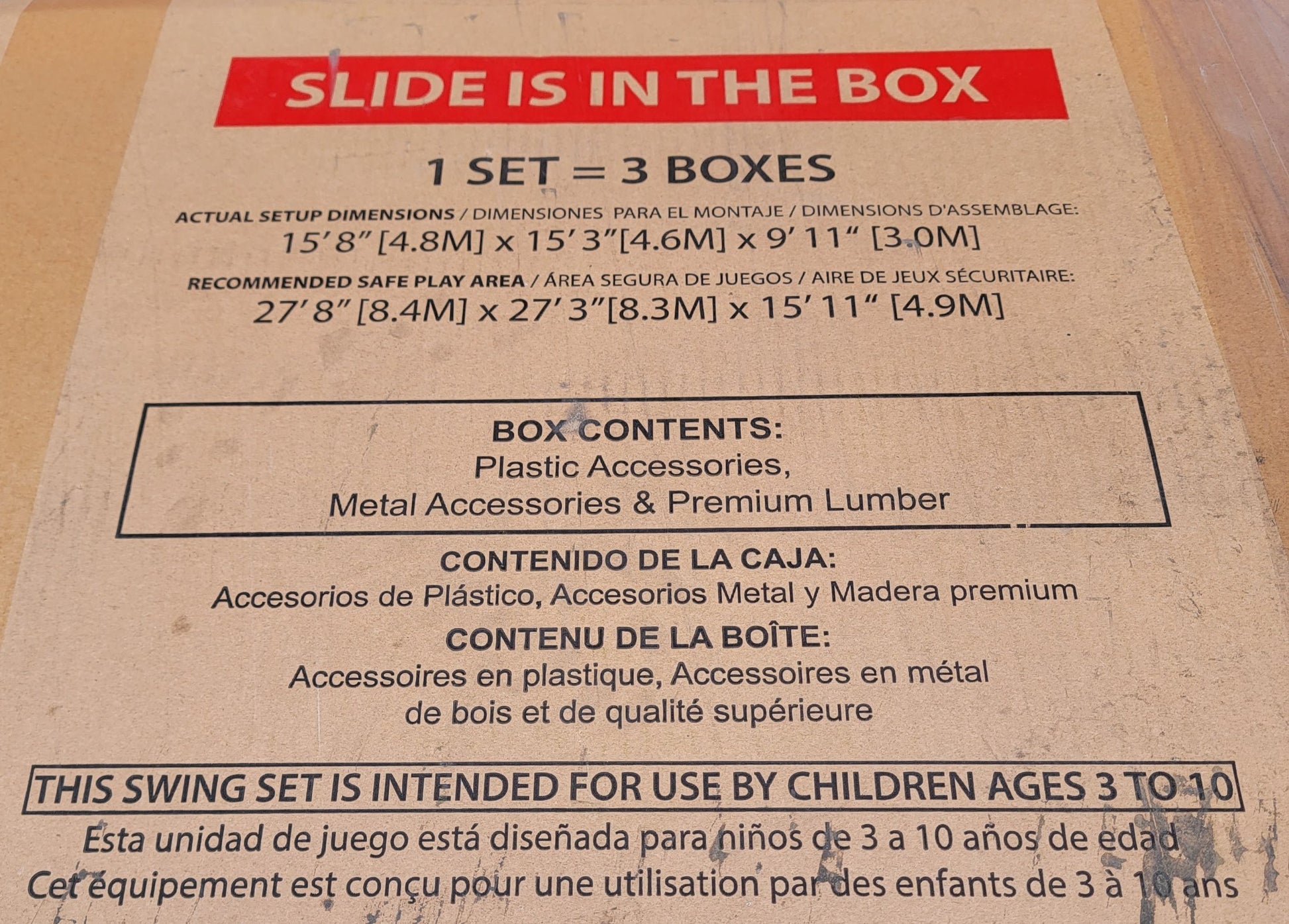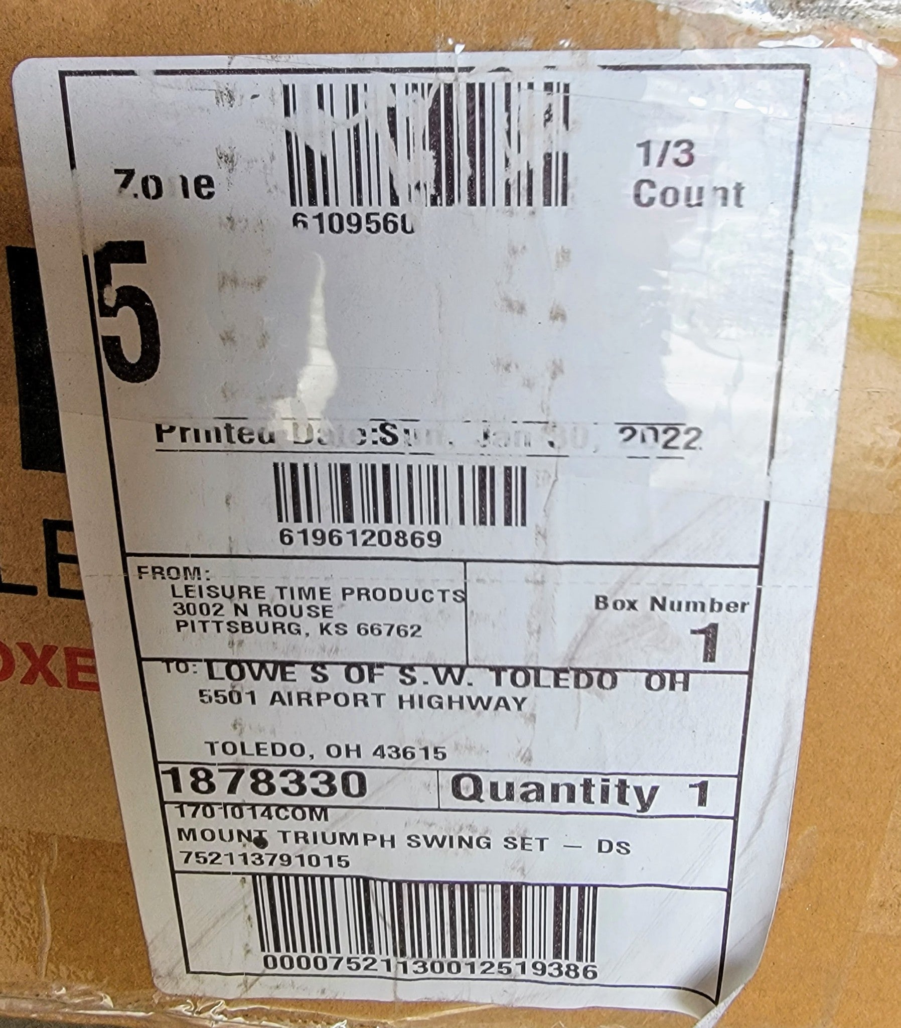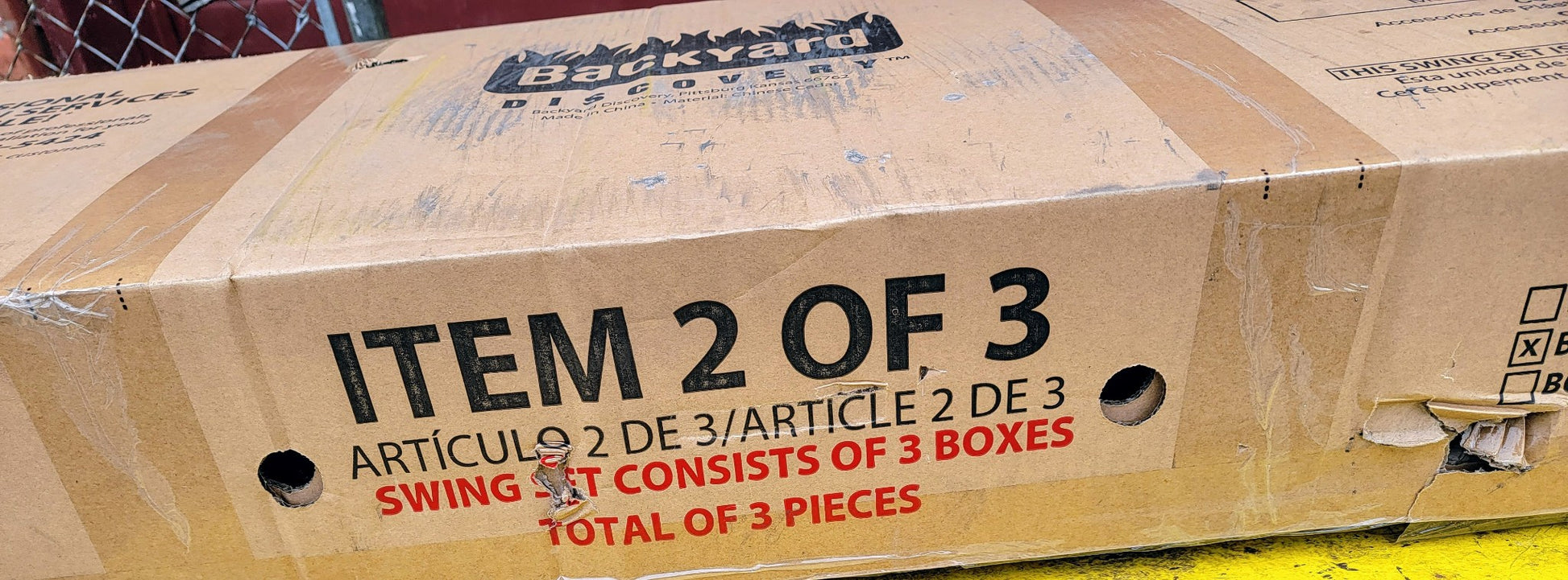 THIS BACKYARD® DISCOVERY MOUNT TRIUMPH MODEL1701014 SWING SET CAME AS A DONATION FROM A LOWES STORE BECAUSE THE BOX WAS OPENED BUT THIS SET IS COMPLETE WITHOUT ANY MISSING PIECES!