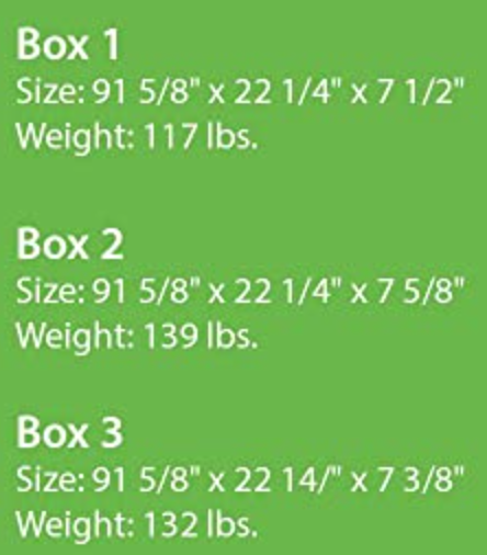 Package Dimensions 92 x 22 x 22 inches