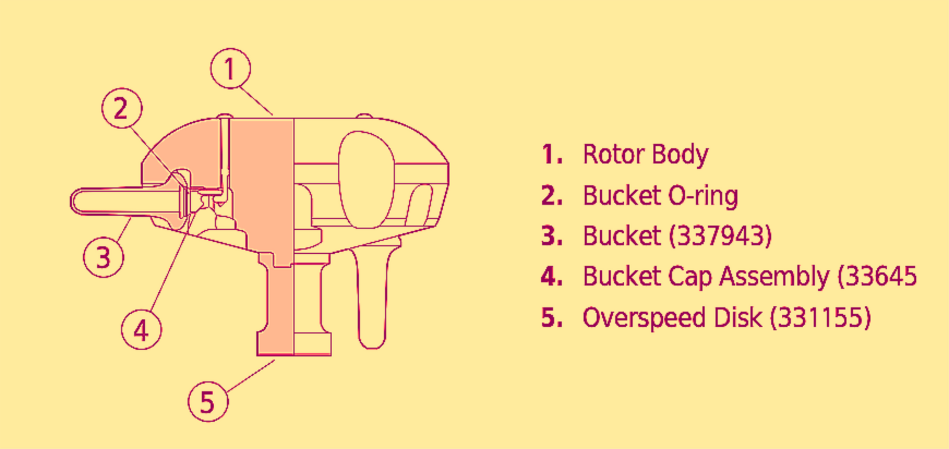 bucket into the rotor pocket. Bucket caps are anodized aluminum. The bucket and cap assemblies