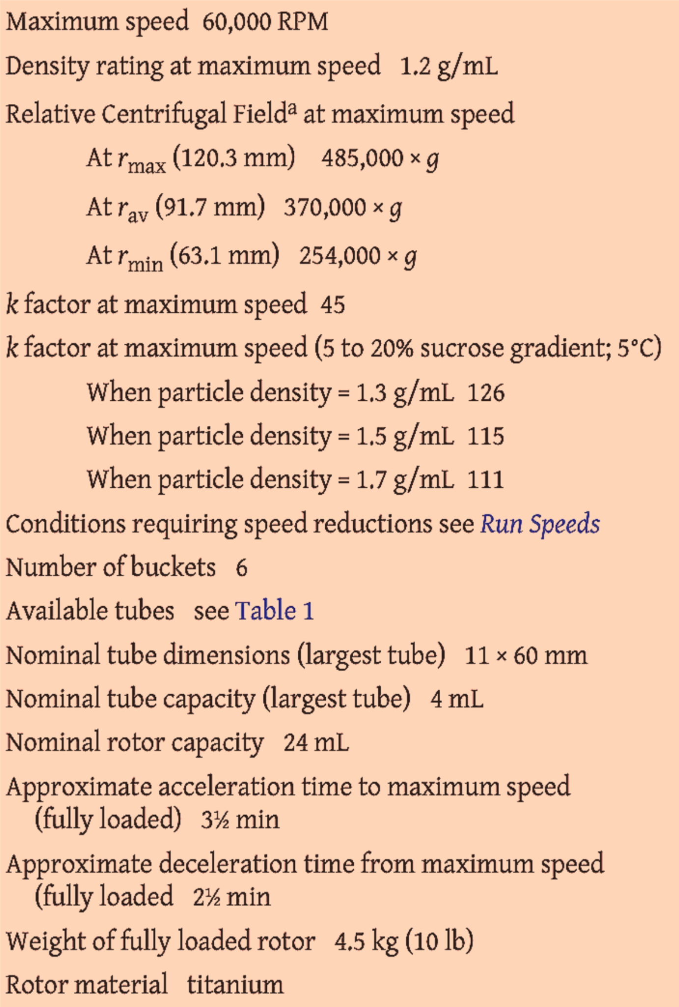 At rmax (120.3 mm) 485,000 × g