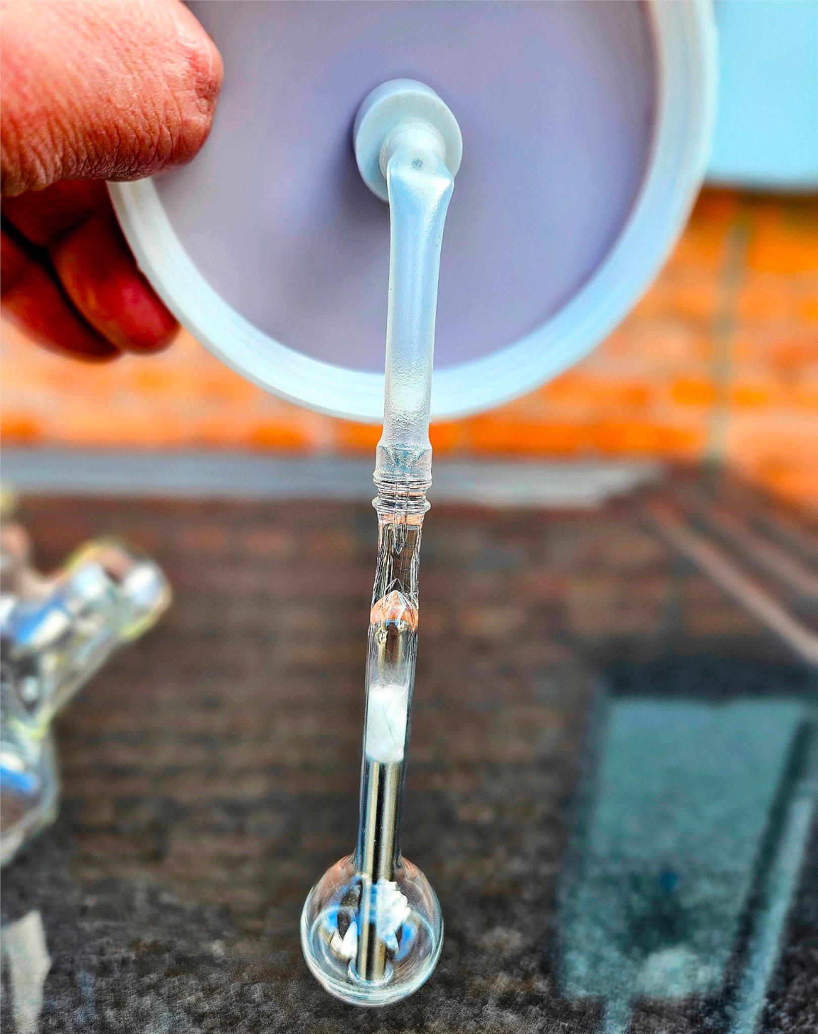 Gentle stirring action provided by a bulb-shaped glass impeller