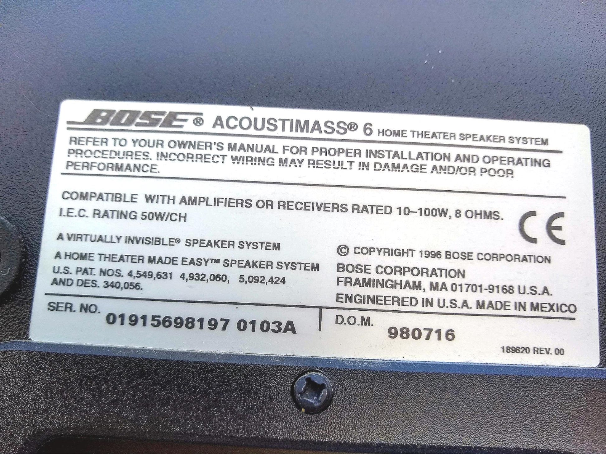 SELLER NOTES: This BOSE ACOUSTIMASS® 6 HOME ENTERTAINMENT SYSTEM was thoroughly tested and both Cube Speakers and Woofer work BEAUTIFULLY!