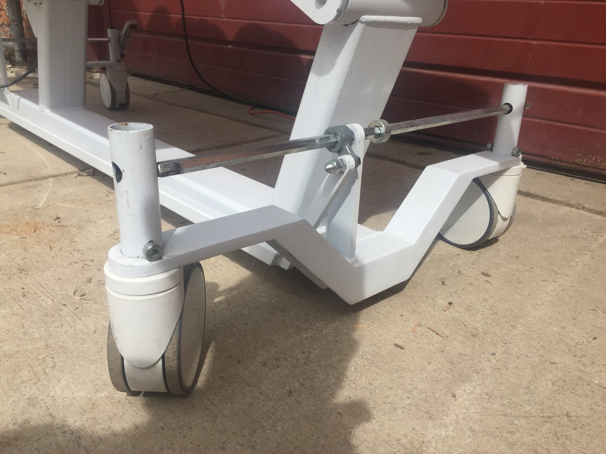 Integrated locking caster system allows all 4 casters to lock or semi-lock to ease movement down hallways
