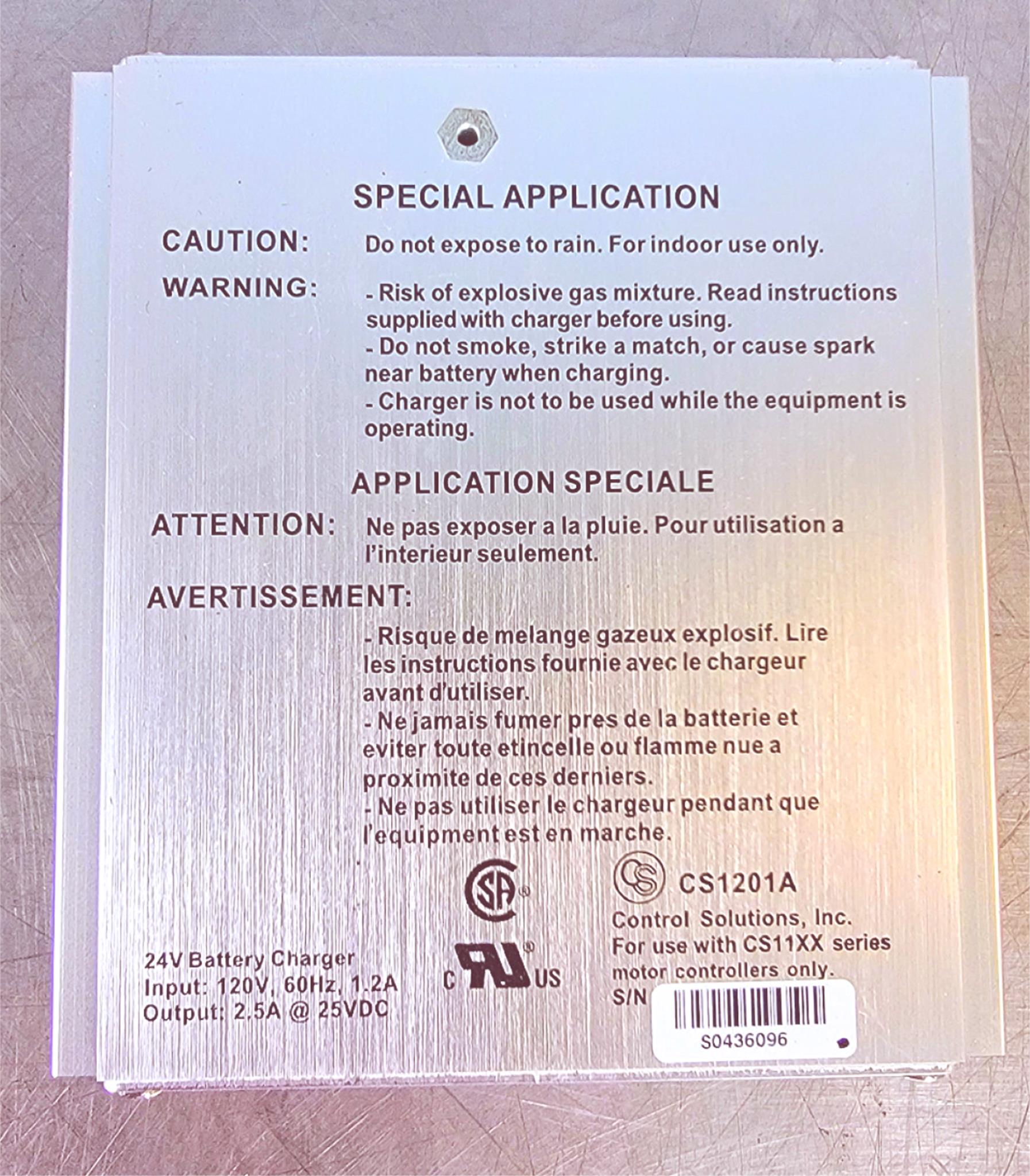 CONTROL SOLUTIONS CS1201A 24V BATTERY CHARGER FREE SHIP