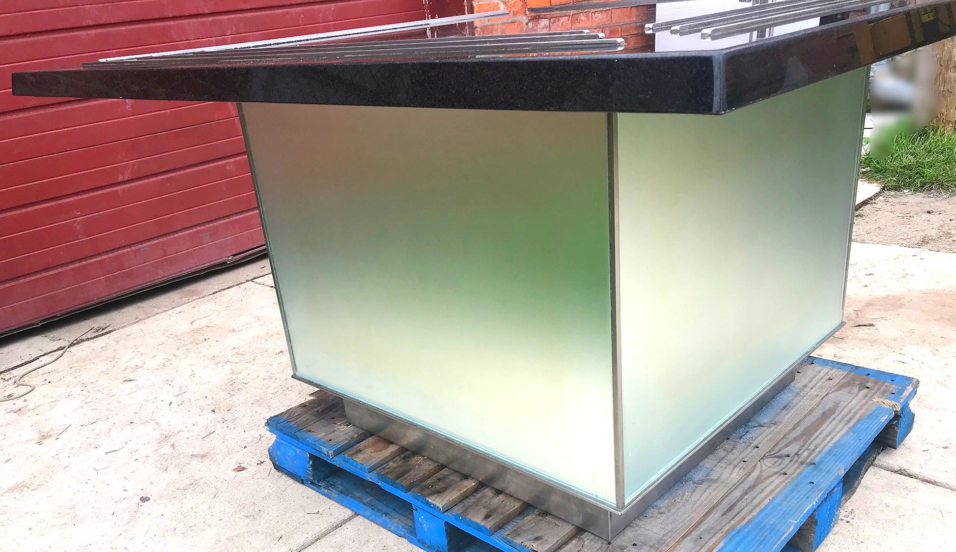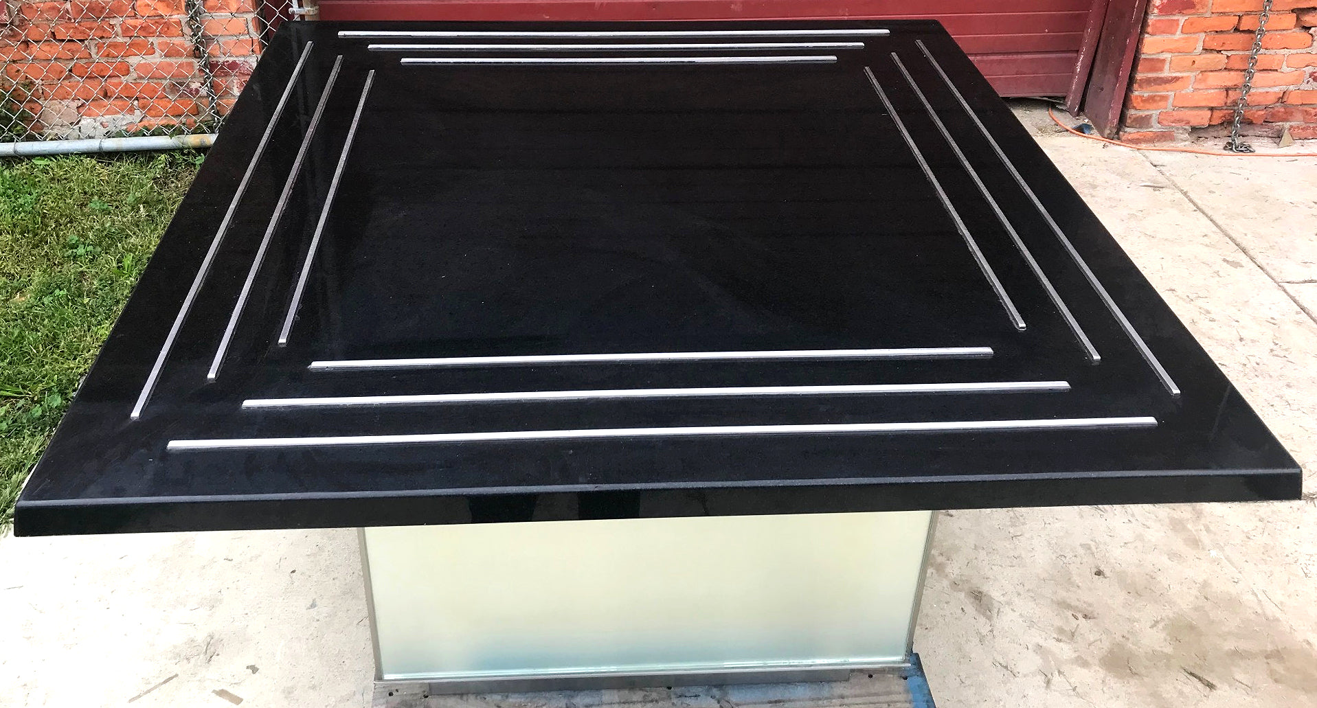 This CUSTOM MADE 5' x 5' foot BLACK GRANITE KITCHEN ISLAND MEETING DISPLAY TABLE with RIMs is extremely well made and also super heavy.