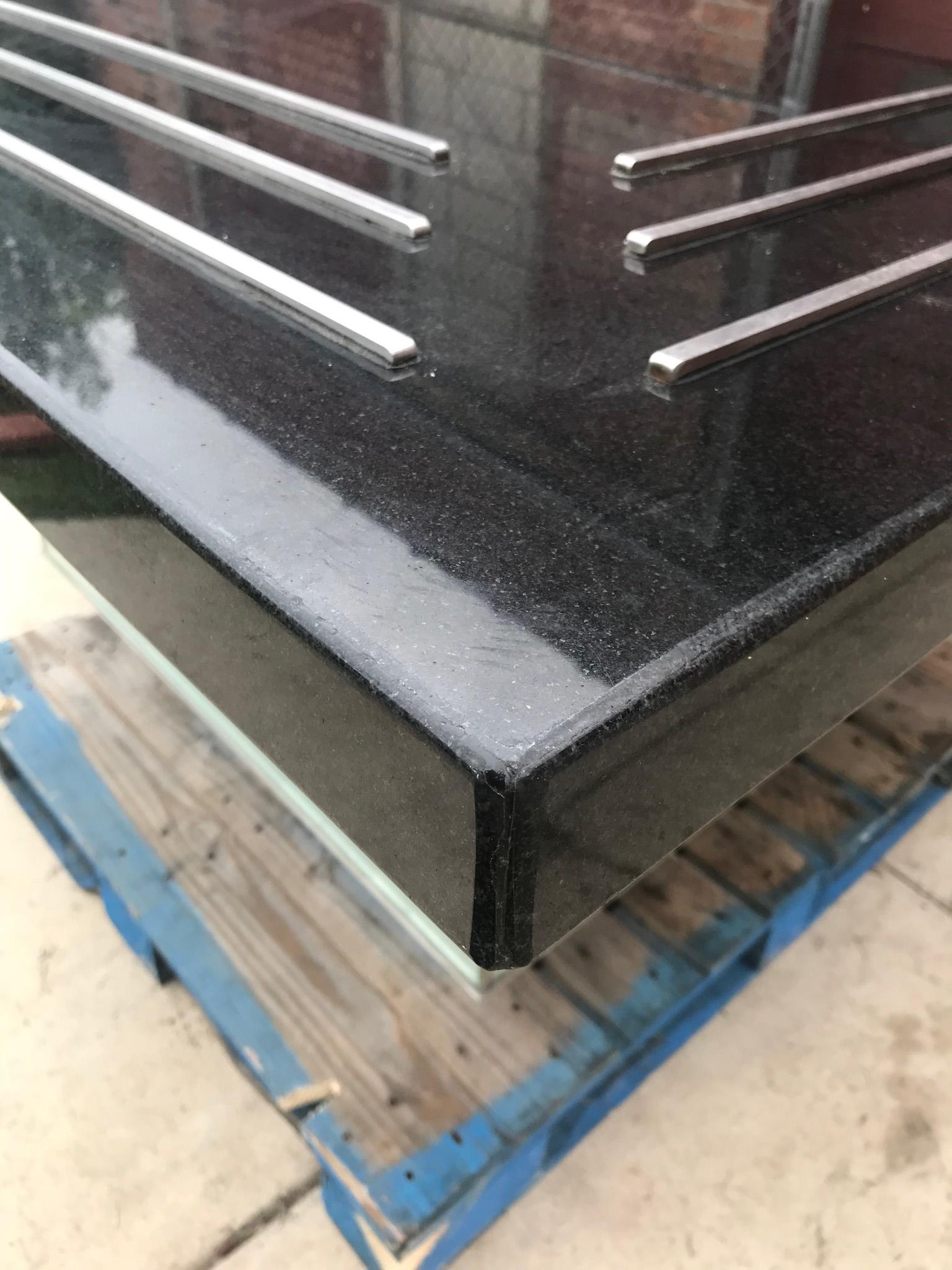 This BLACK GRANITE KITCHEN ISLAND MEETING DISPLAY TABLE comes with top Surface Aluminum Rims which can be removed if buyer wants to.