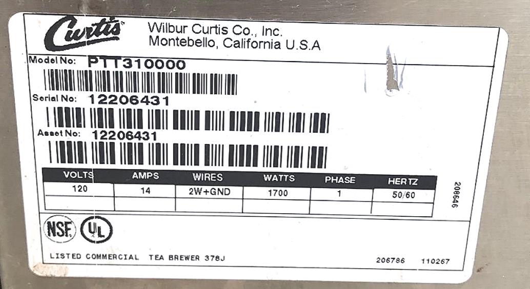 CURTIS PTT310000 ICED 3 GALLON TEA BREWER QUICKBREW PERCULATOR FREE SHIP