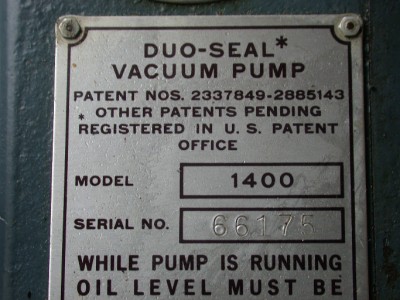 DUO-SEAL BELT DRIVE ROTARY VANE DUO SEAL MODEL 1400 VACUUM PUMP AS YOU CAN SEE FROM THE PICTURES.