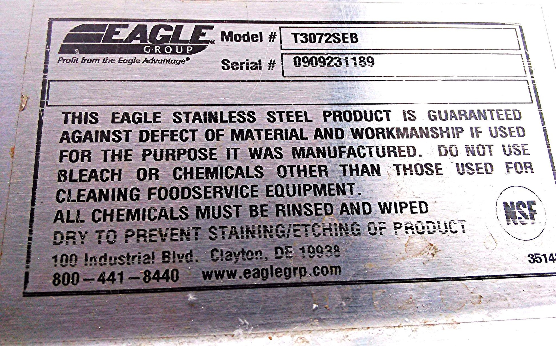 The 72" x 30" Worktable (T3072SEB) from Eagle is constructed for tough, commercial environments with a stainless steel top, stainless steel legs and adjustable feet.