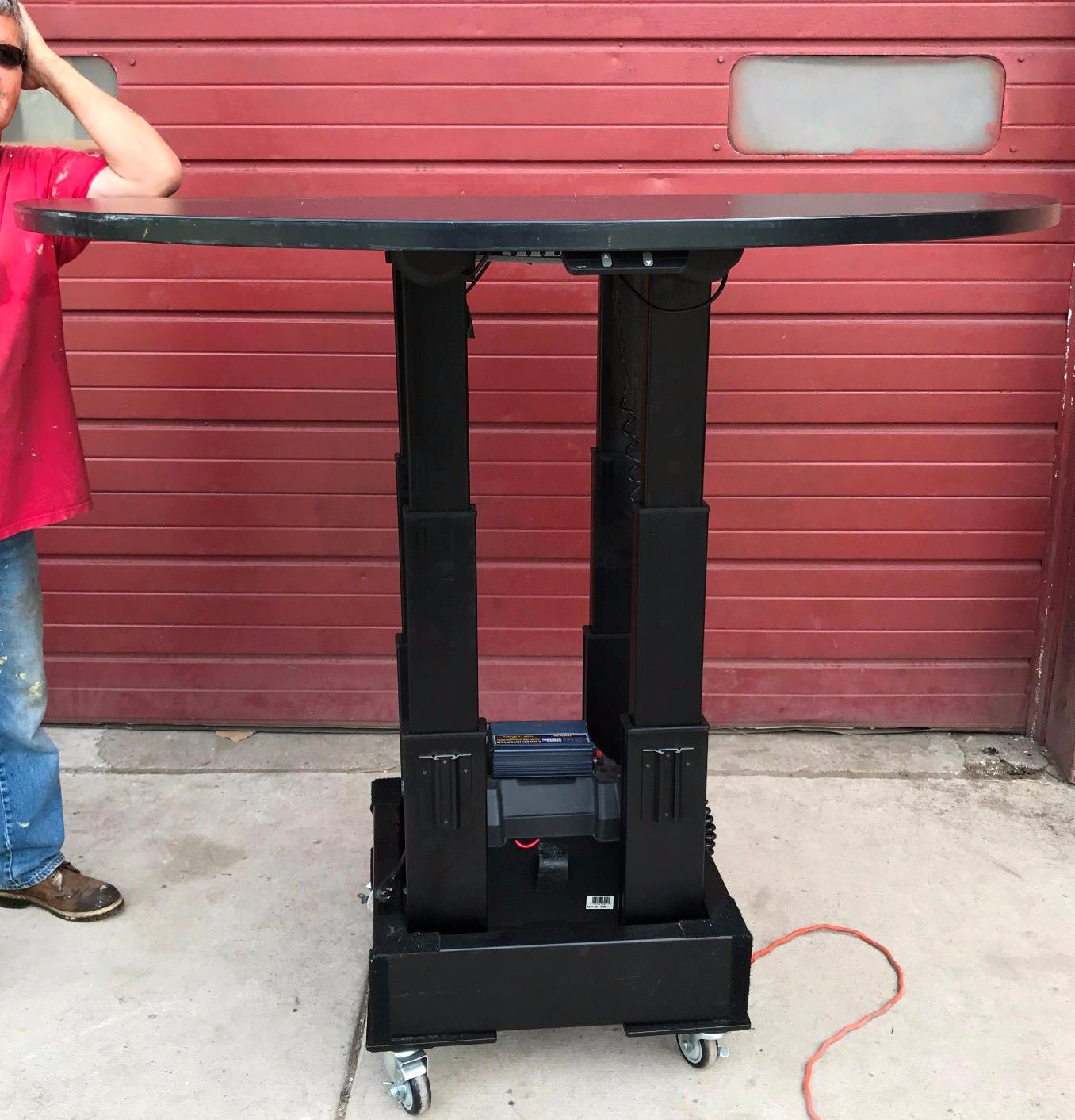 This is an Hi-Lo adjustable height desktop; the work shelf ("desktop") is individually controlled.