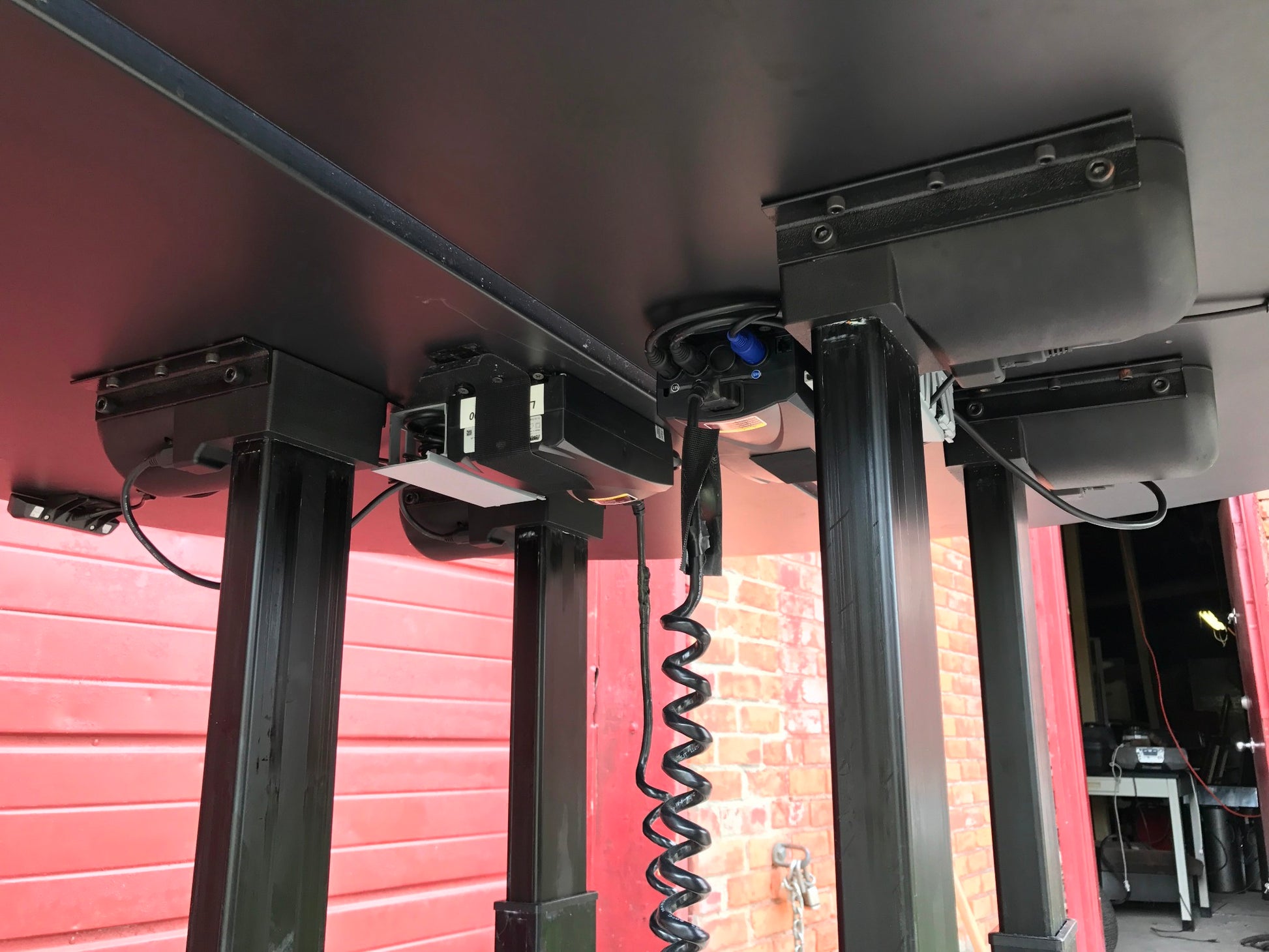The two hydraulic lifts enable both desktops to be effortlessly raised or lowered without any effort as can be watched in the video.