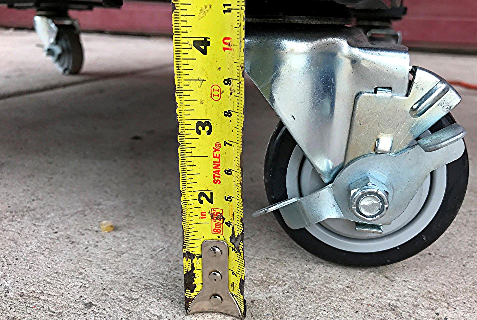 Comes with 4 Locking Casters (each caster is 3" 1/2' tall).