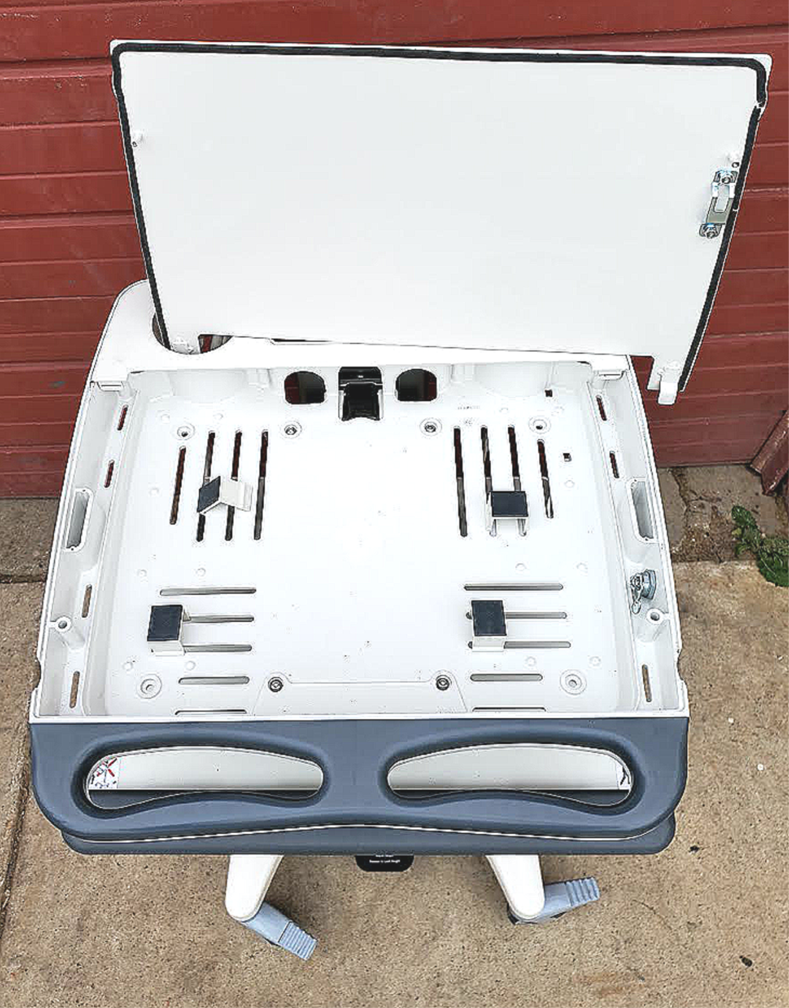 Feel free to check Manufacturer's Technical Data on this GCX Cart by GOOGLING the following link: laboratory-equipment.com/cart-medical-mobile-desk-roll-stand-variable-height-gcx-9600-77a.html