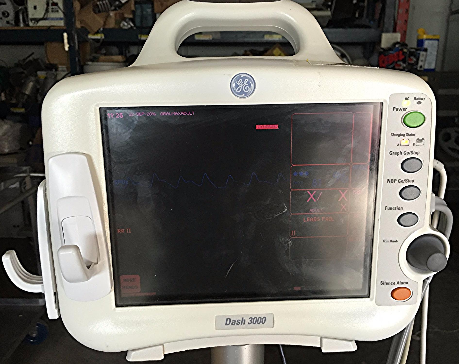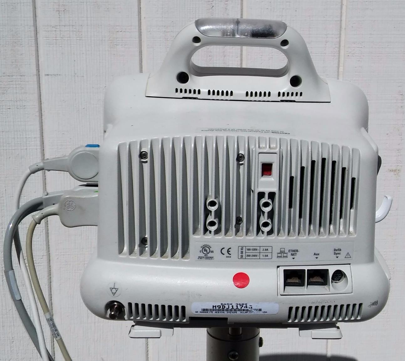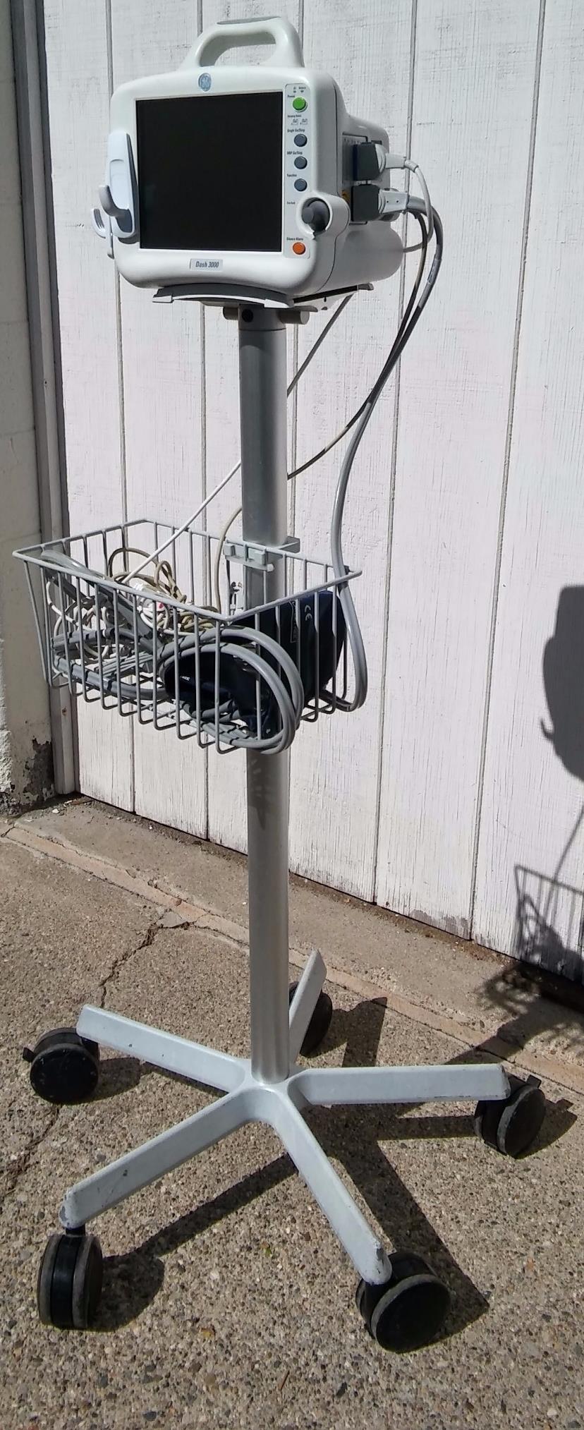 This listing is for a Used Condition & Working GE DASH 3000 Vital Signs Monitor & STAND LEADS CUFF OXIMETER PRINTER.