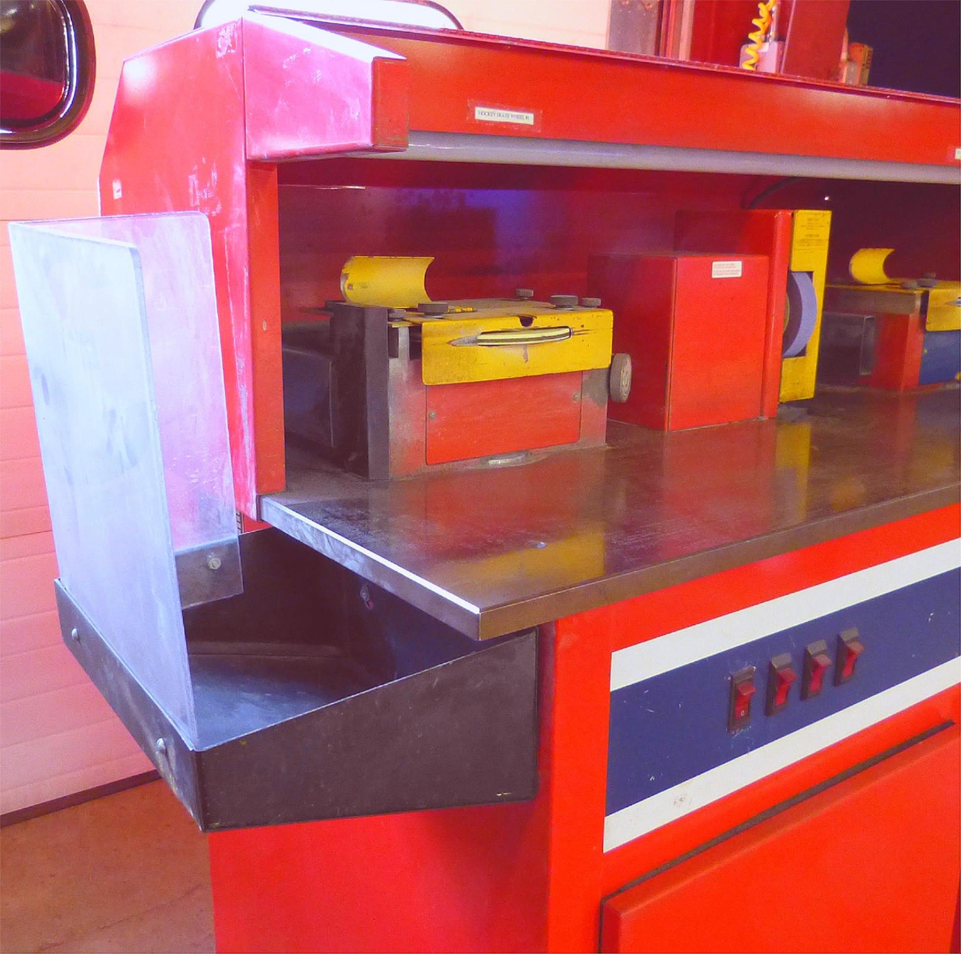 Feel free to watch a similar Professional Guspro Skate Sharpener machine used by the Detroit Red Wings by clicking the following video: https://www.youtube.com/watch?v=rdV2XILQKMU
