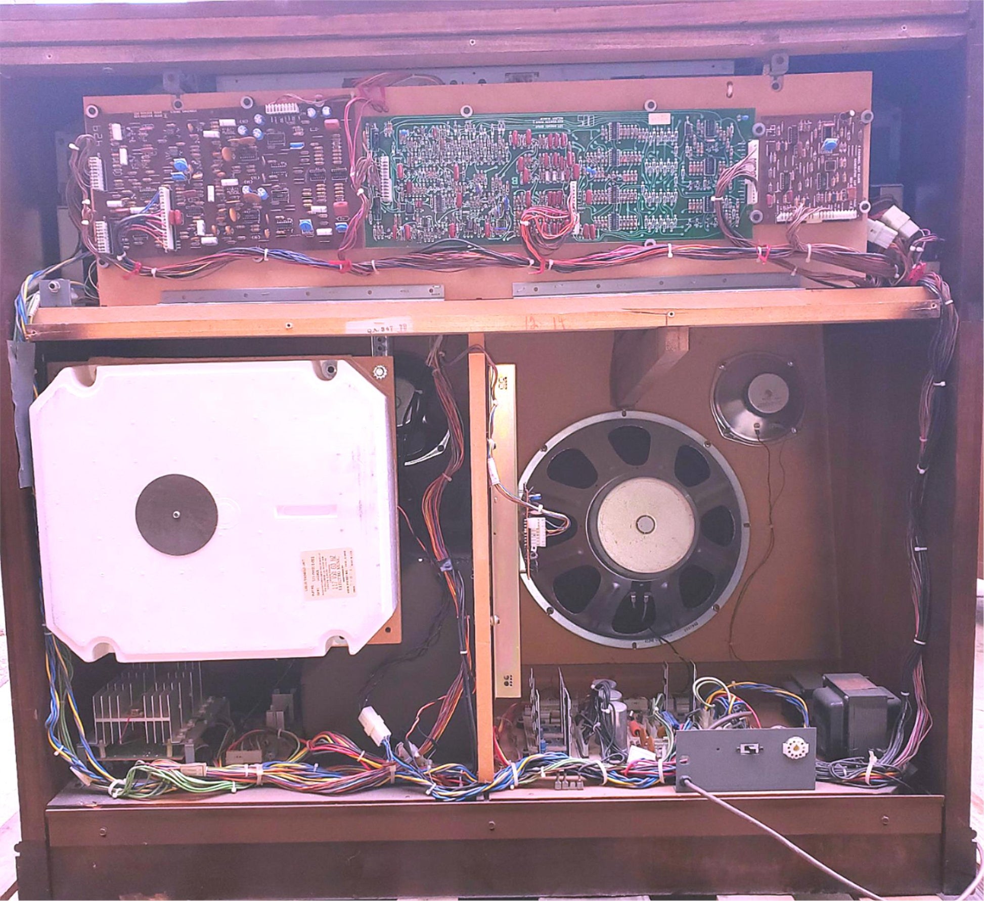 This unit has been extremely well taken care of, there is a tiny nip on the bench vinyl which happened when we moved it, nothing serious but we thought it worth mentioning.