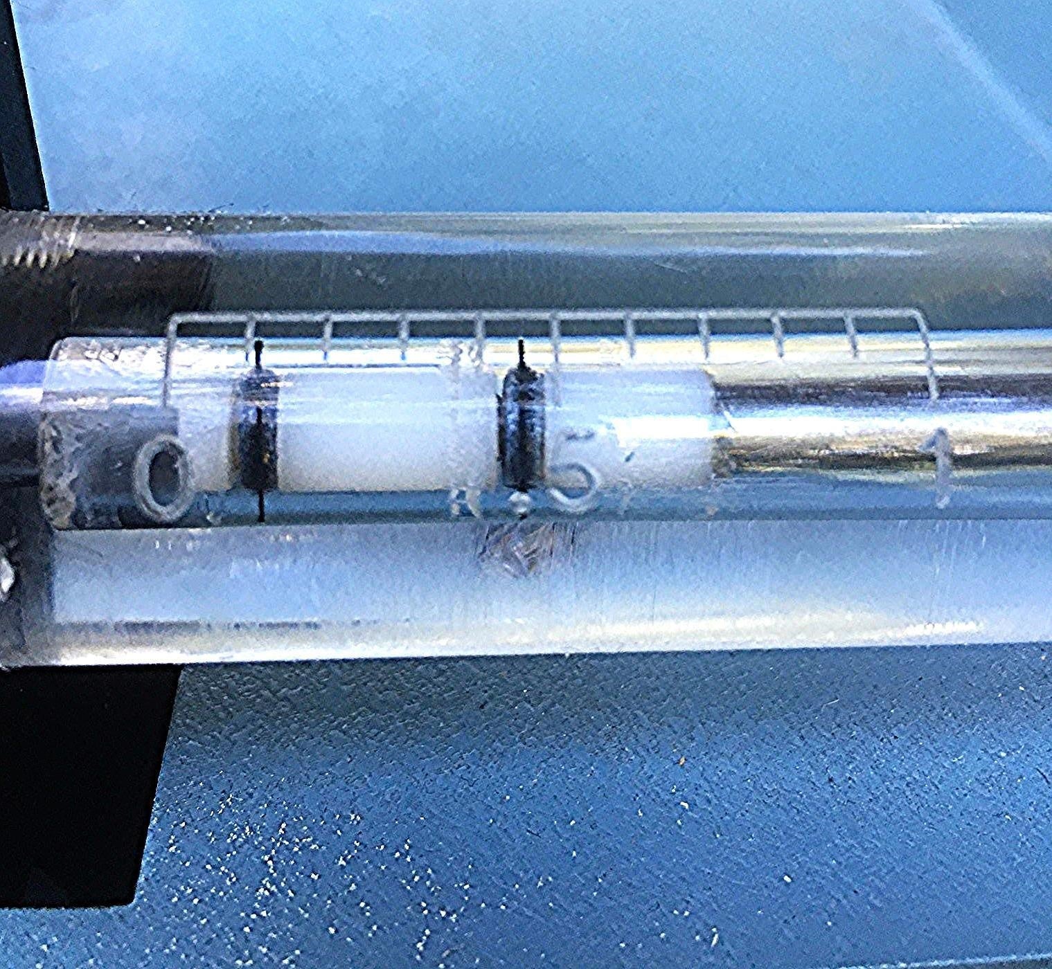 The Model 683 Small Animal Ventilator comes standard with two piston and cylinder assemblies. The smaller piston (which comes installed) allows tidal volumes to be set from 0.5 to 5.0 cc in 0.5 cc increments and the larger cylinder allows tidal volumes of 3.0 to 30 cc in 0.3 cc increments. Setting the cylinder stroke between gradations it is possible to achieve finer resolution in tidal volume settings.