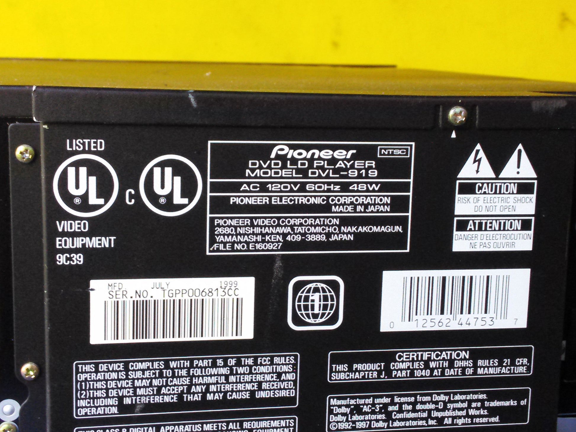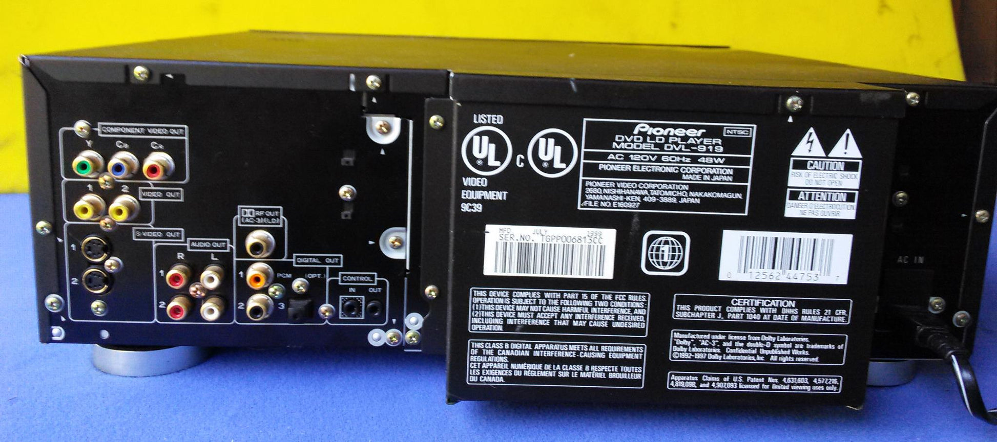 This eBay listing is for a used but nice working condition Pioneer high end Laserdisc / DVD / CD player model DVL-919 that comes as you see pictured.