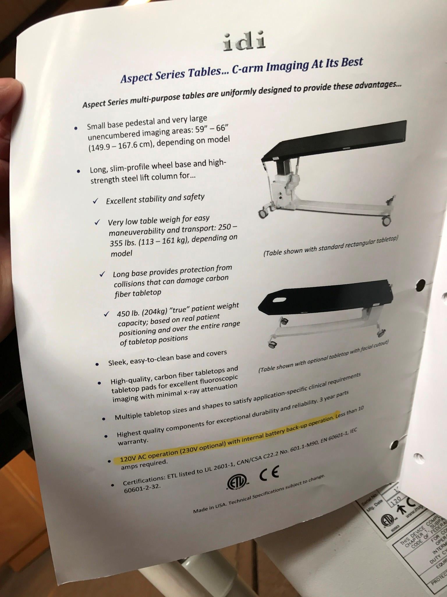 IDI ASPECT 100RT X-Ray CArm HI-LO IMAGING EXAM TABLE FOOT HAND REMOTE WATCHVIDEO