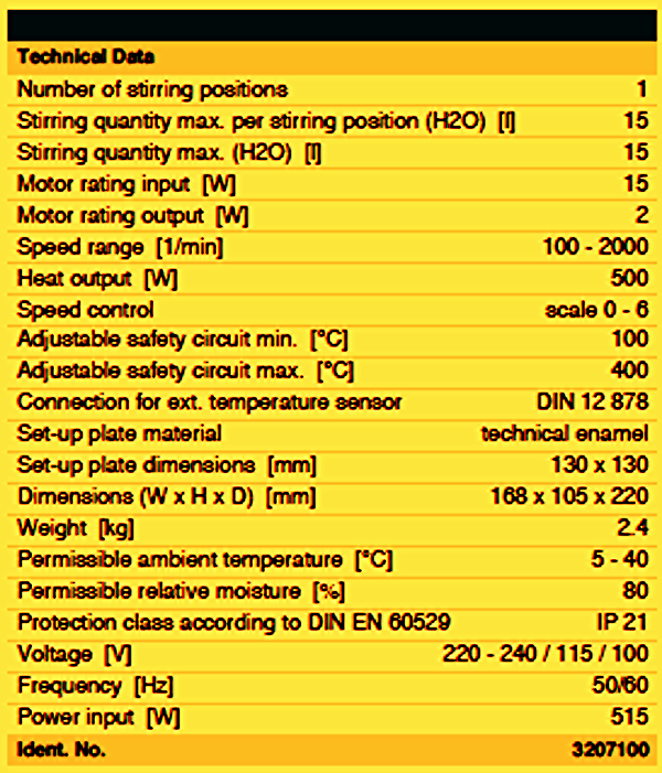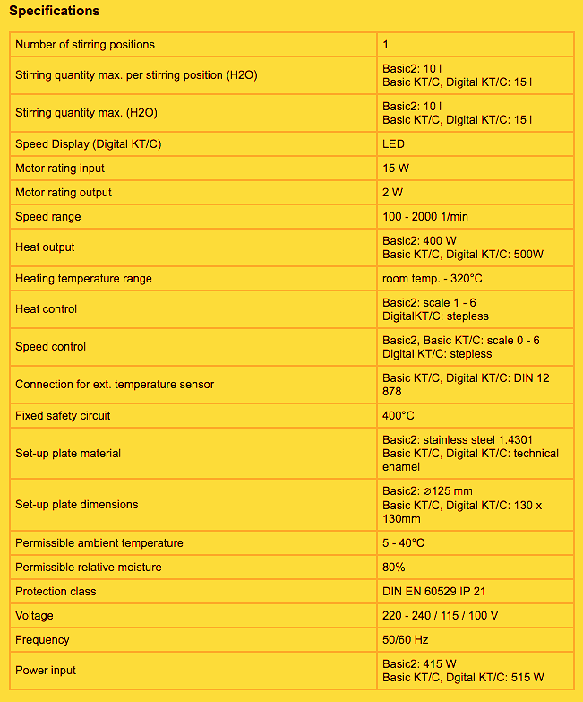 Feel free to Check Manufacturer's Data Sheet on this IKA RH BASIC KT / C HOT PLATE MAGNETIC STIRRER by Clicking http://www.imlab.be/imlab_en/Ika/Pdf/Mixing/Data_Sheet_RH_basic_KT-C_IMLAB.pdf