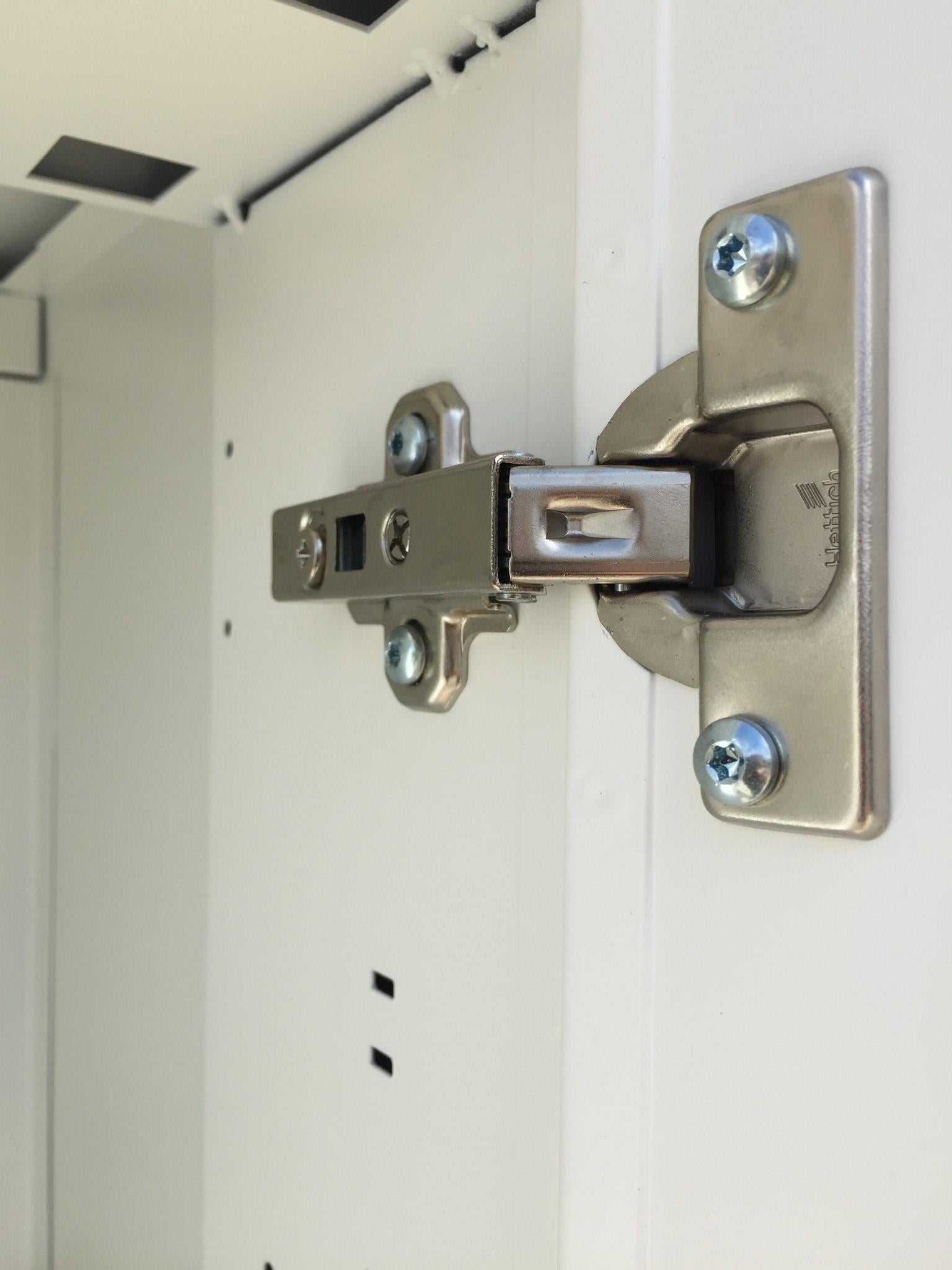 Configuration: all 4 doors per unit open with 2 shelves and hinged door