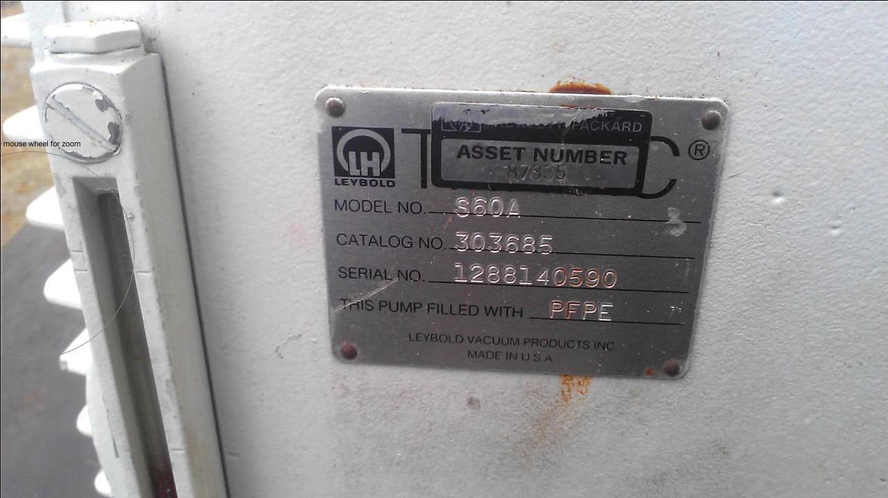 The Leybold S60A Trivac is a durable vacuum pump with a superior vapor handling capability. The Leybold S60A dual stage rotary vane mechanical vacuum pump offers an excellent ultimate pressure Torr. These pumps are commonly used for vacuum furnace evacuation, backing turbomolecular pumps, backing diffusion pumps, rotary evaporation, refrigeration system evacuation, epoxy degassing, vacuum sterilization, backing mass spectrometers, freeze drying, vacuum centrifugal applications, vacuum distillation, space research, and other vacuum processes.