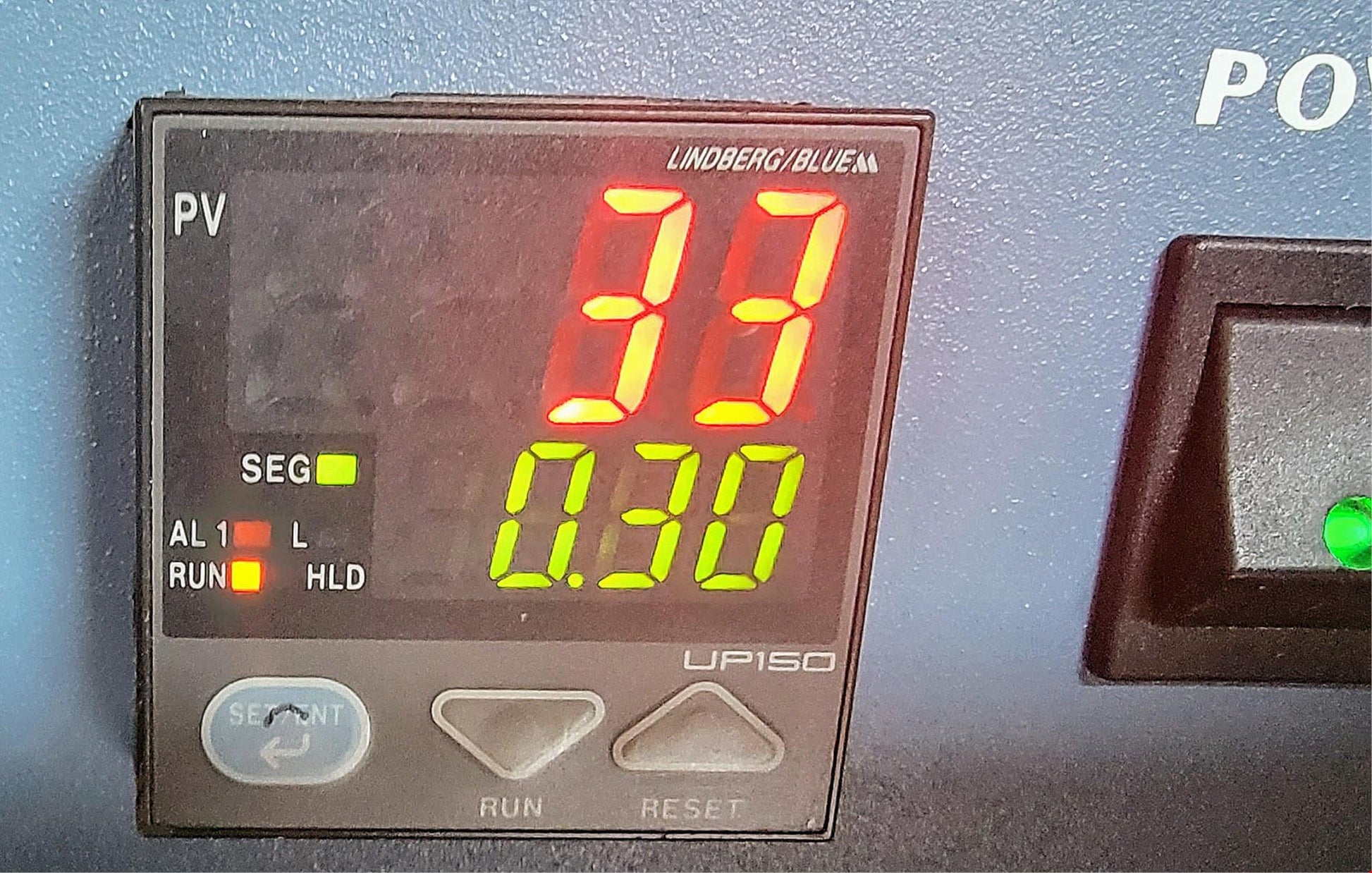 Chamber temperature and setpoint temperature are displayed simultaneously on LED display.