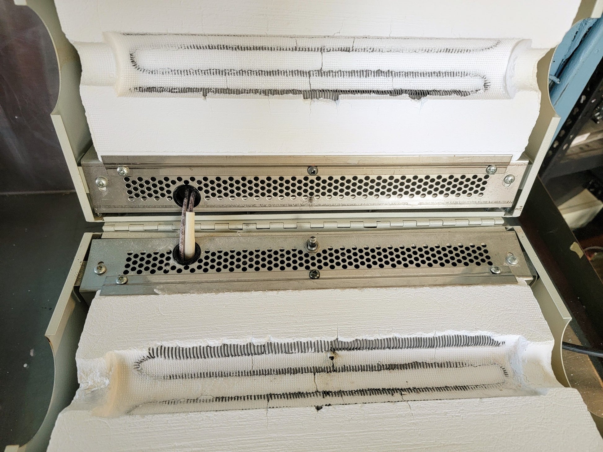 Safety power disconnect switch shuts off power to heating elements when furnace is opened.