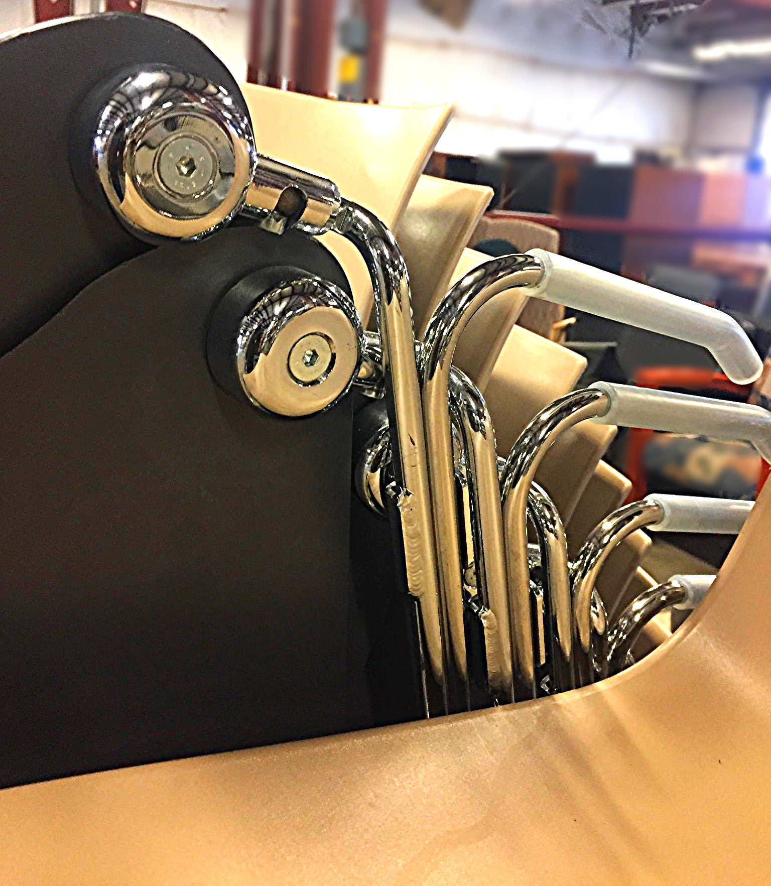 The base comes in chrome-finish steel, satin-finish stainless steel, aluminum, powder-coated aluminum, and is available in the sled configuration.