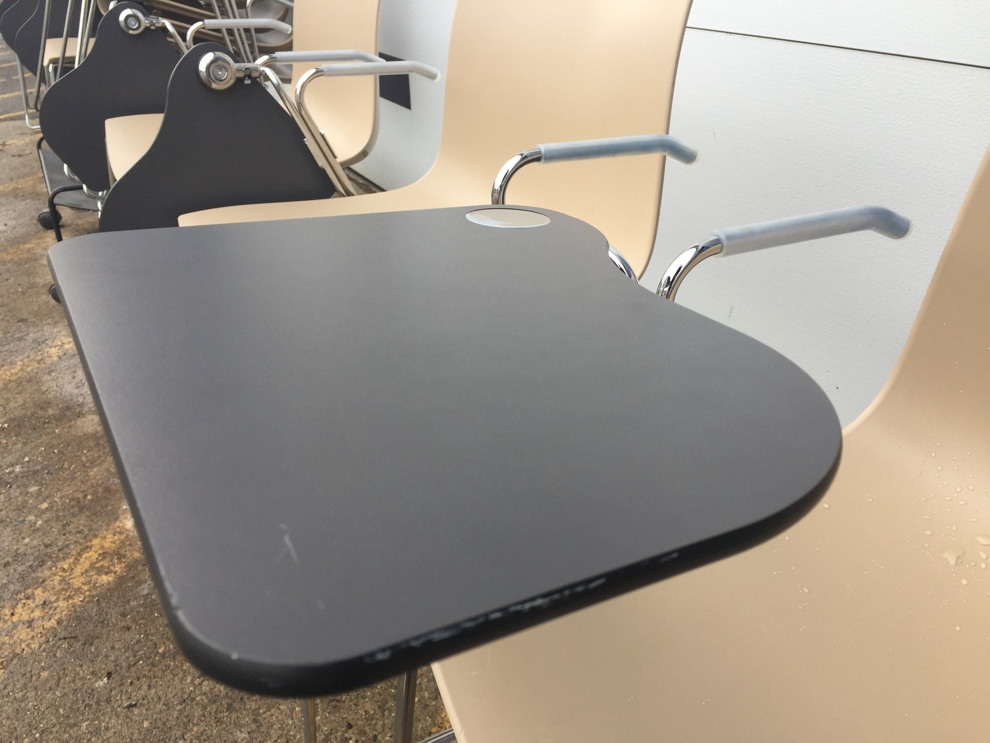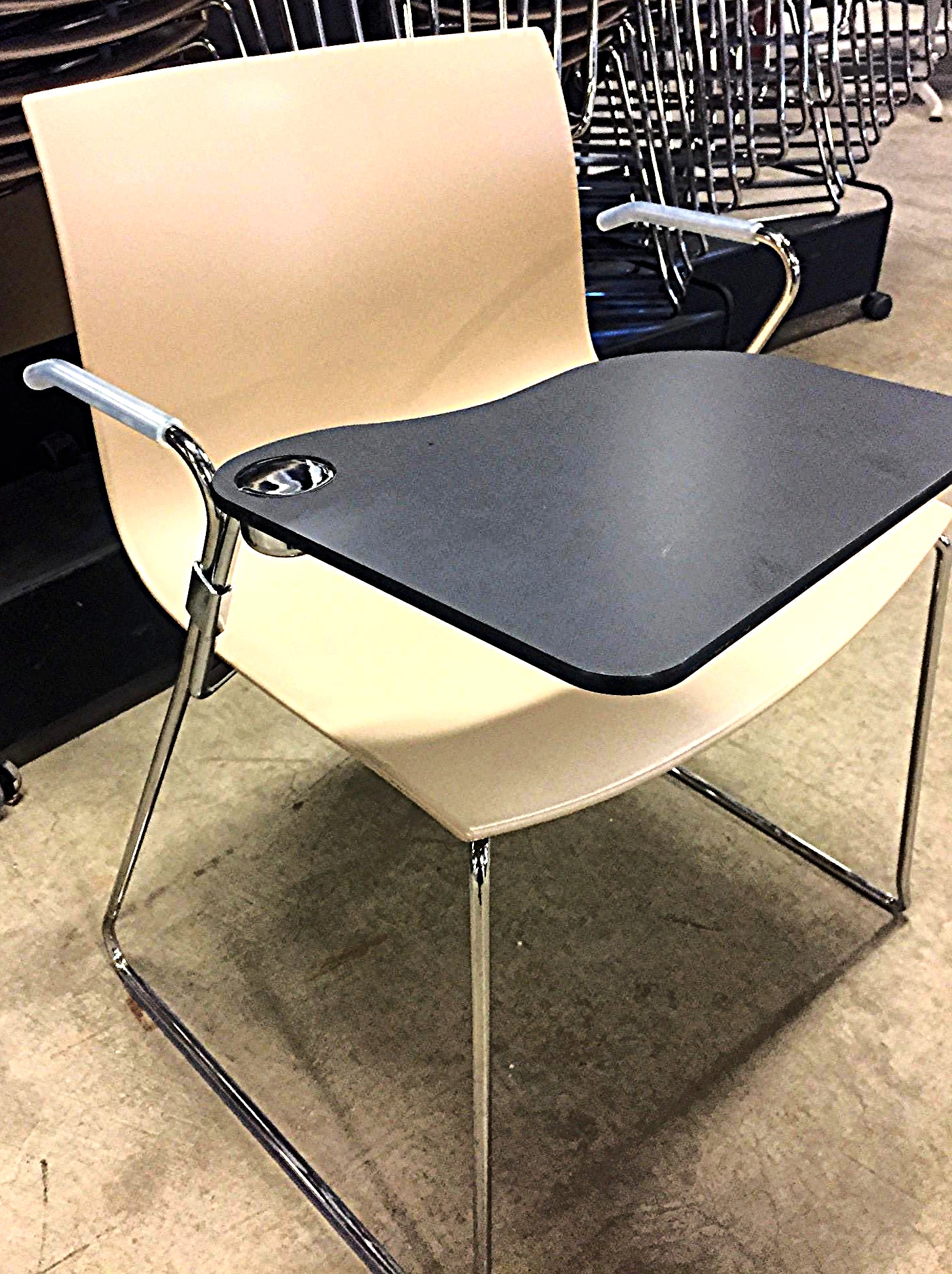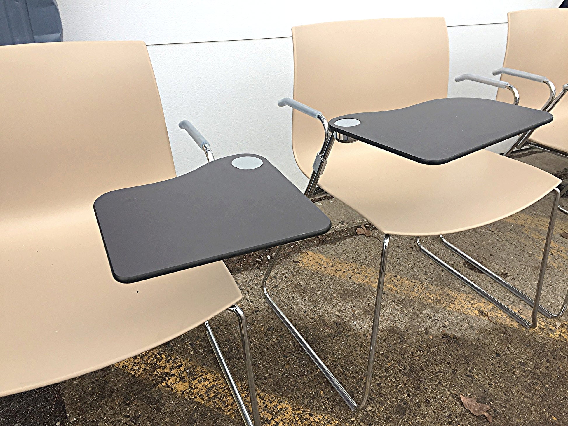 They come with writing tablets which can be removed so the chairs can be used as regular SLED BASED ARPER CATIFA 46s or kept with them if to be used for business purposes.