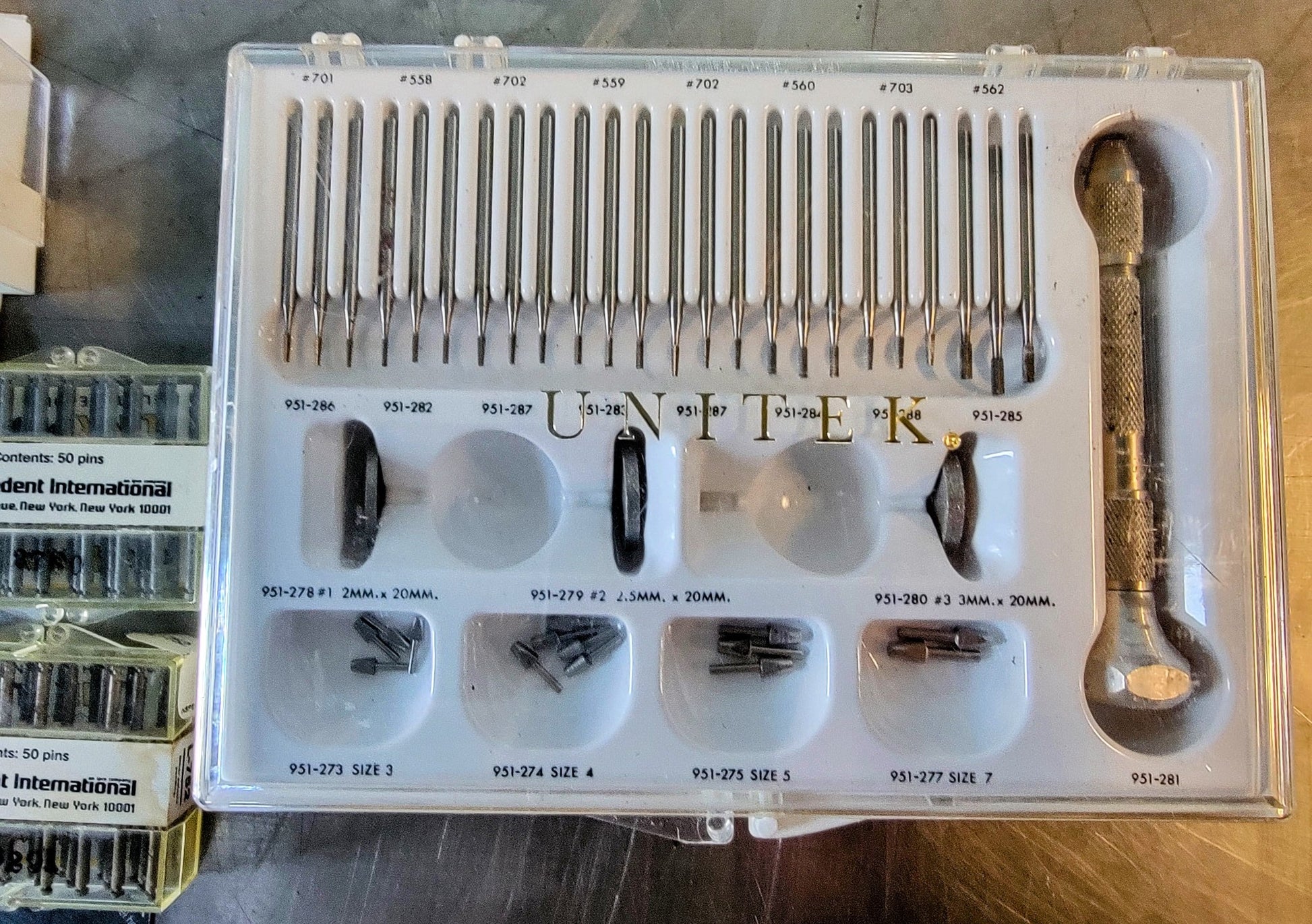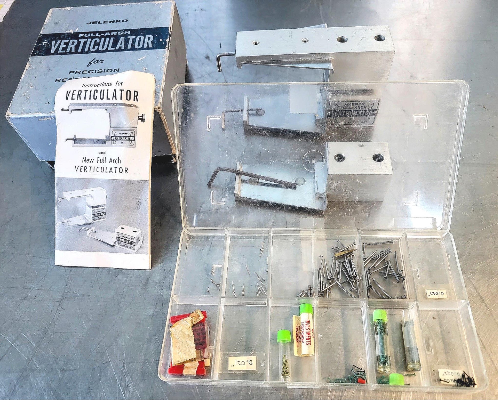 This listing is for a Great Big Lot of Dental Supplies such as Drills, Composites, Restoration, etecetera from famous brands such as: E A BECK MARKLEY / JELENKO VERTICULATOR / EDS FLEXIPOST / WHALEDENT / UNITEK / SMS / NTI KAHLA AXIS / BRASSELER ESTHETIC POLISHING / SS WHITE COLOR GUIDE / COLUMBIA DENTOFORM / KODEX TWIST DRILLS as can be seen in the pictures.