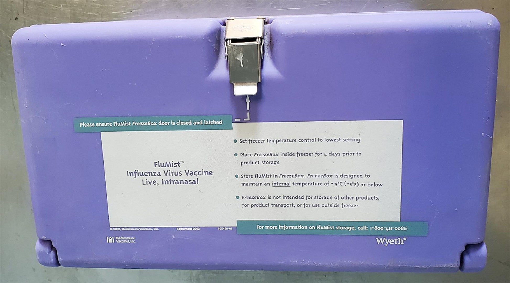 MEDIMMUNE WYETH INFLUENZA VACCINE CONTAINER STORAGE COLD BOX FREEZER 5°F = -15°C