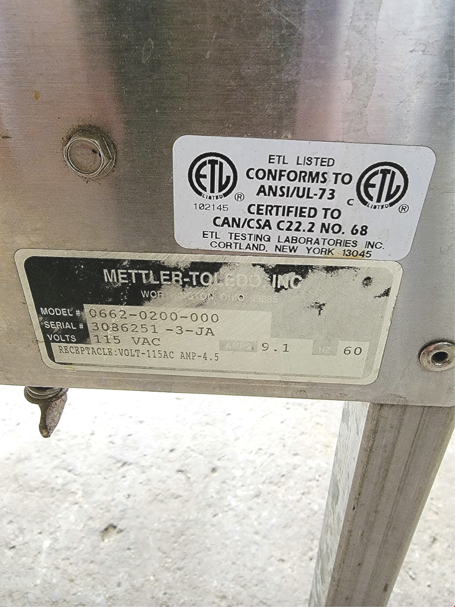 Mettler - Toledo Heat Wrap Station, model# 0662-0200-00, 115 VAC, 9.1 amps, 60 hz, Approximate dimensions 50" W x 35" D x 58"H