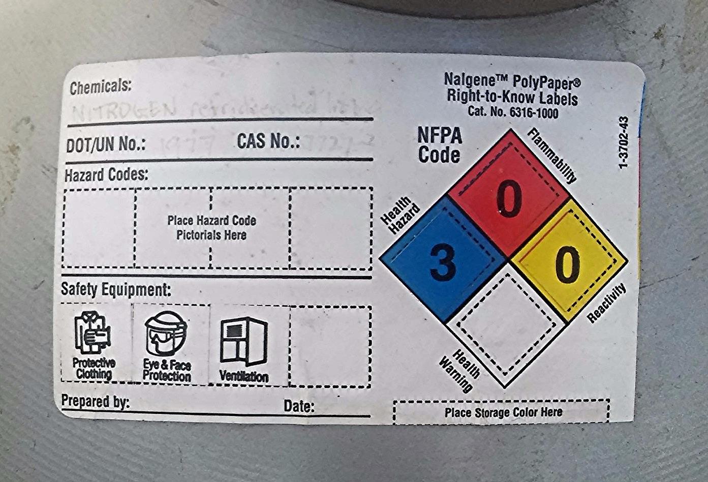 Temperatures generally range between -320°F (-196°C) at the liquid surface, and -299°F (-184°C) under the closed necktube core.