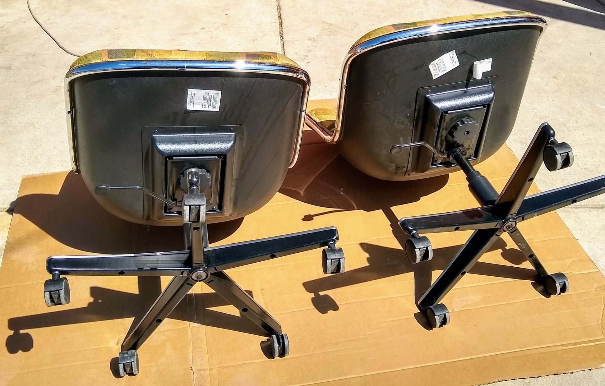 IMPORTANT: "AS CAN BE SEEN THE ARM RESTS ARE NOT PRESENT, THAT'S WHY THE LOW PRICE". THESE 2 CHAIRS CAN BE USED WITHOUT THEM WITHOUT ANY PROBLEMS AND IF BUYER WANTS TO THEY CAN BE EASILY BE FOUND ONLINE AS WELL, THEY ARE FREQUENTLY SOLD HERE ON EBAY FOR LESS THAN $50.