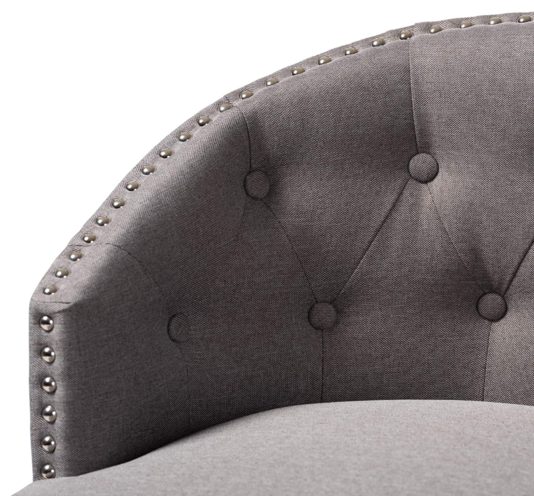 Stylish nailhead trim and button-tufting impart elegance