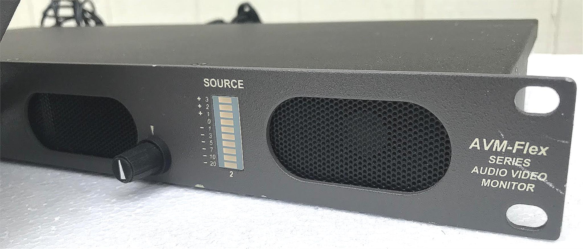 All AVMFlex-SA Series models come equipped with two 10-segment tri-color (red/amber/green) LED bargraph display level meters, separate volume and balance controls, a power indication LED, headphone output, and an SDI lock status LED display, which visually shows the lock status of SDI signals selected for monitoring.