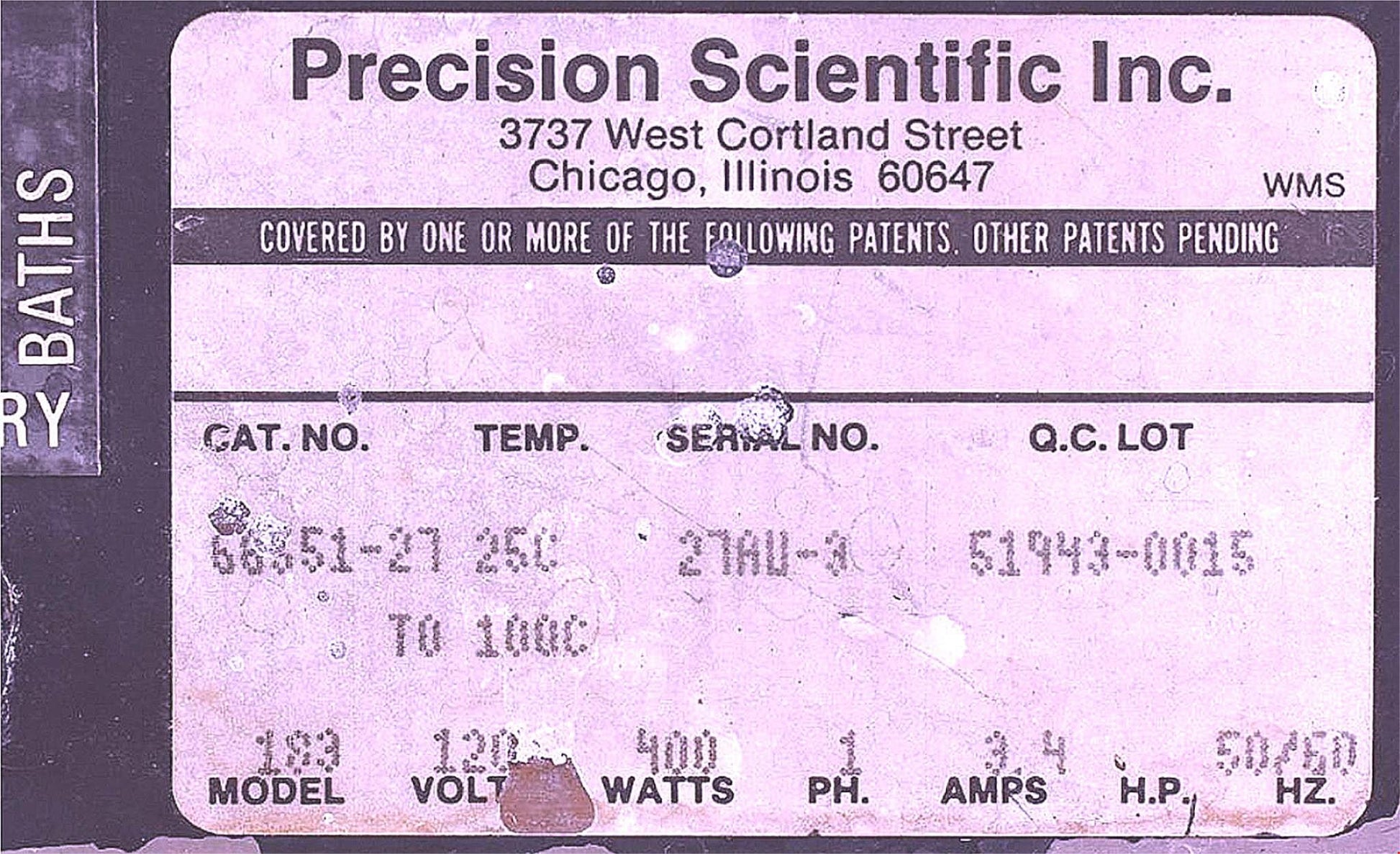 PRECISION SCIENTIFIC 183 HEATED WATER BATH CATEGORY 66551-27 / 90-DAY-WARRANTY