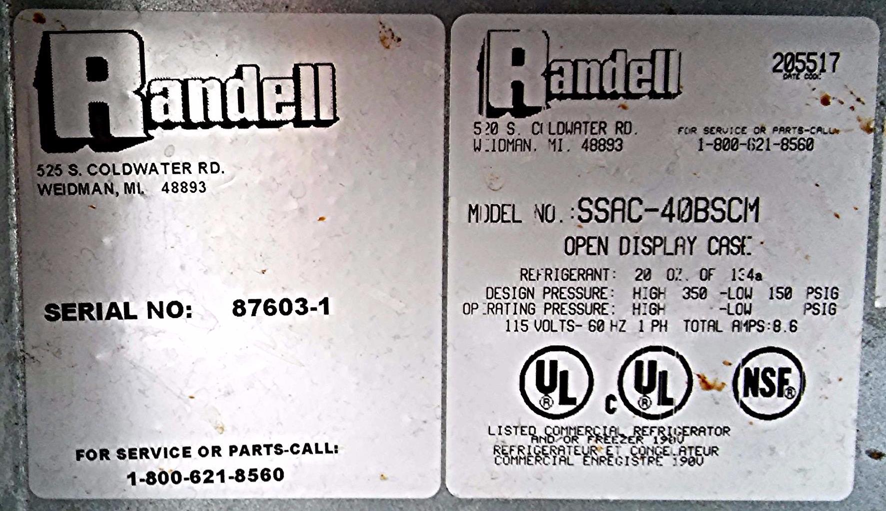 RANDELL SSAC GRAB-N-GO REFRIG SELF SERVICE AIR CURTAIN MERCHANDISER OPEN DISPLAY