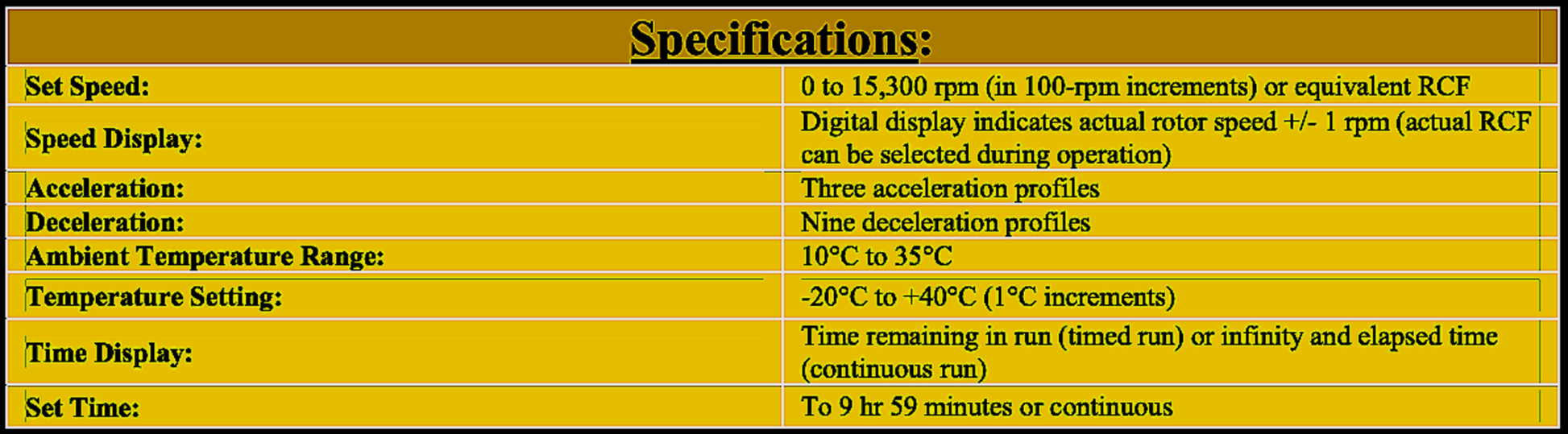 Set Speed: 0 to 15,300 rpm (in 100-rpm increments) or equivalent RCF