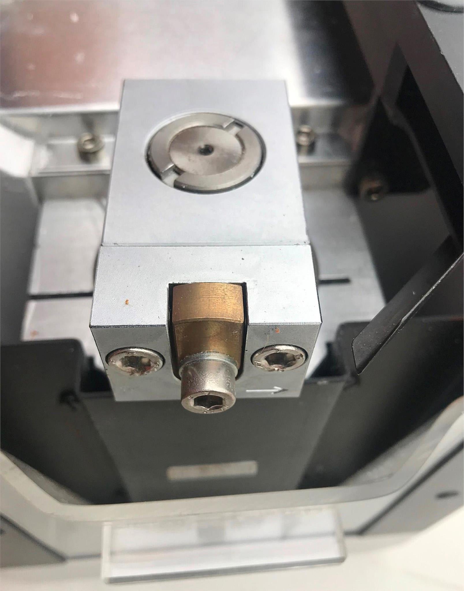 With each sledge stroke, the micrometer feed mechanism of the Leica SM2500 (not included in this listing) lowers the miller towards the specimen by the feed setting se- lected.
