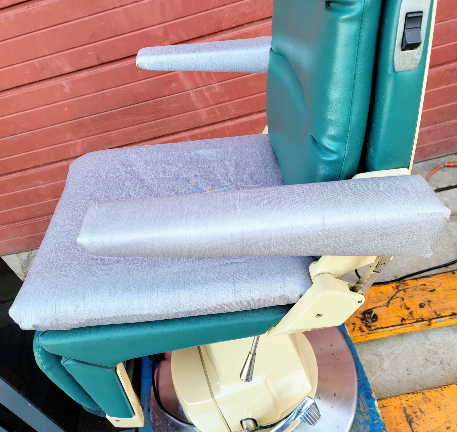 COSMETIC CONDITION: Both Arm Rests and Seat Cushion have been upholstered/covered with protective heavy duty Impermeable fabric as can be seen in the pictures. The Head Rest, Back Rest and Calf Rest are all in the Original Vinyl covering without any rips or tears as can also be seen in the pictures.