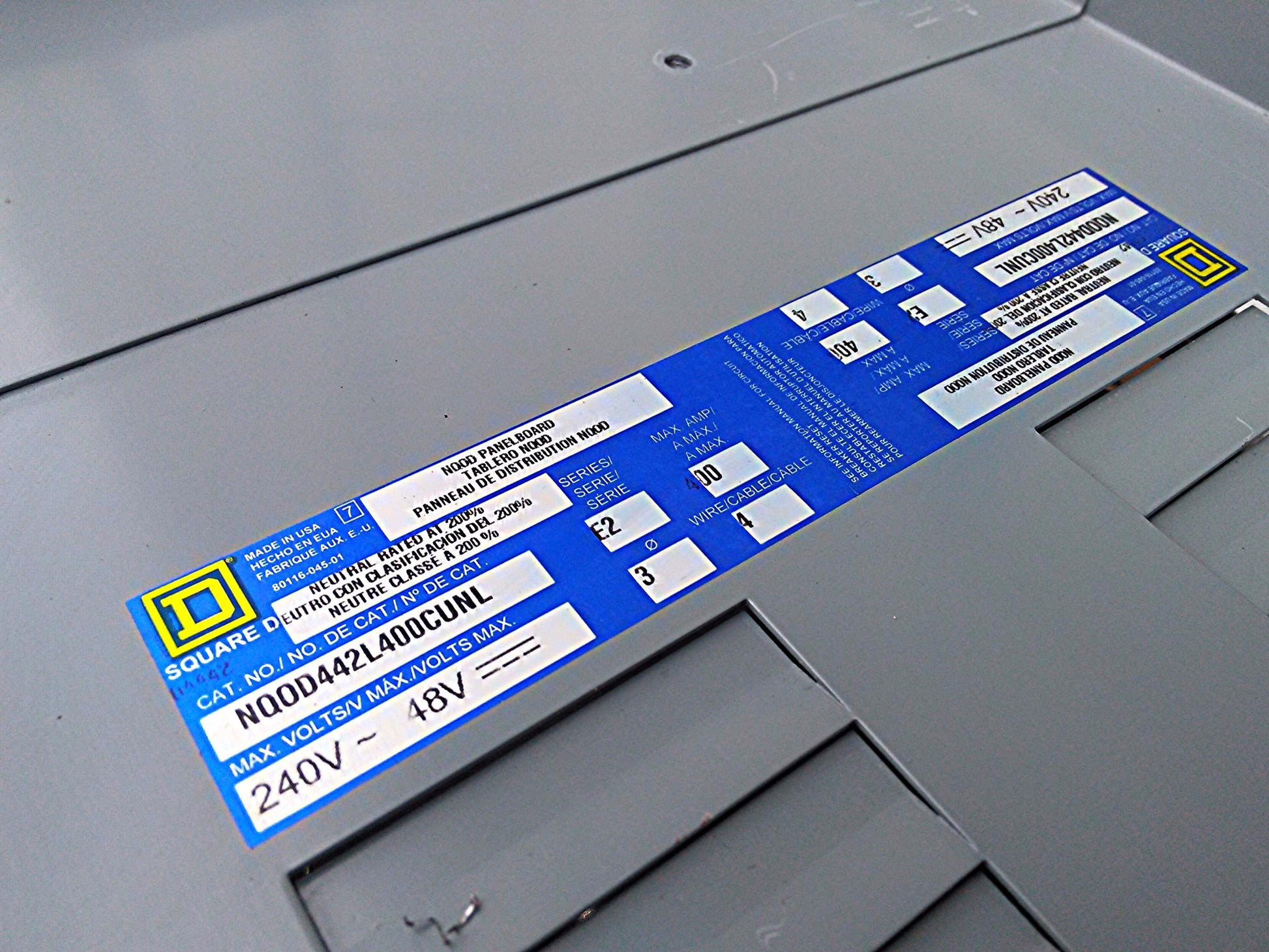 SQUARE D NQOD442L4OOCUNL MAIN CIRCUIT BREAKER PANEL BOARD ELECTRIC FREESHIP