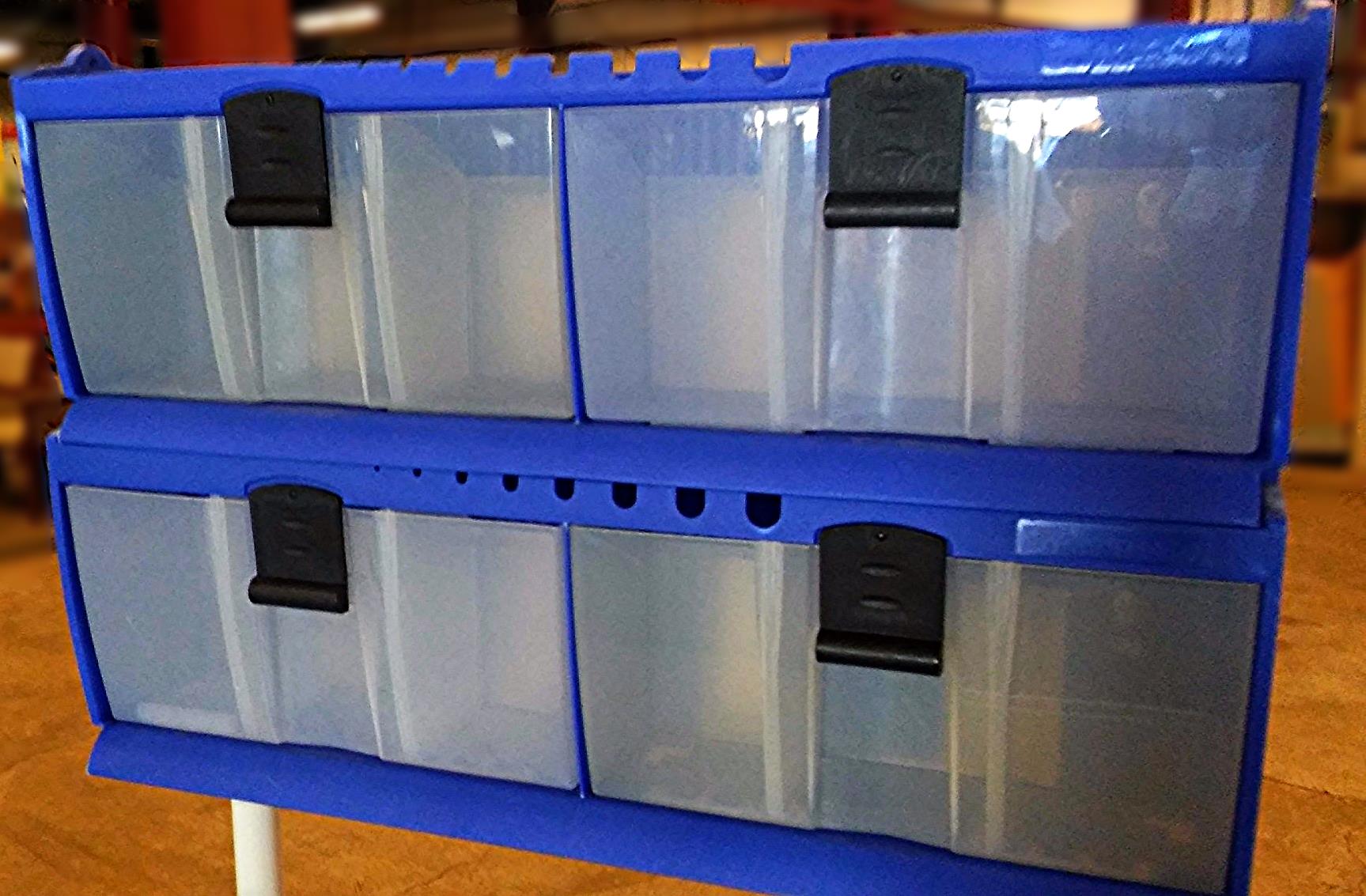 AKRO-MILLS BINS ALREADY ADAPTED ON TOP FIVE DRAWERS WITH DIVIDERS